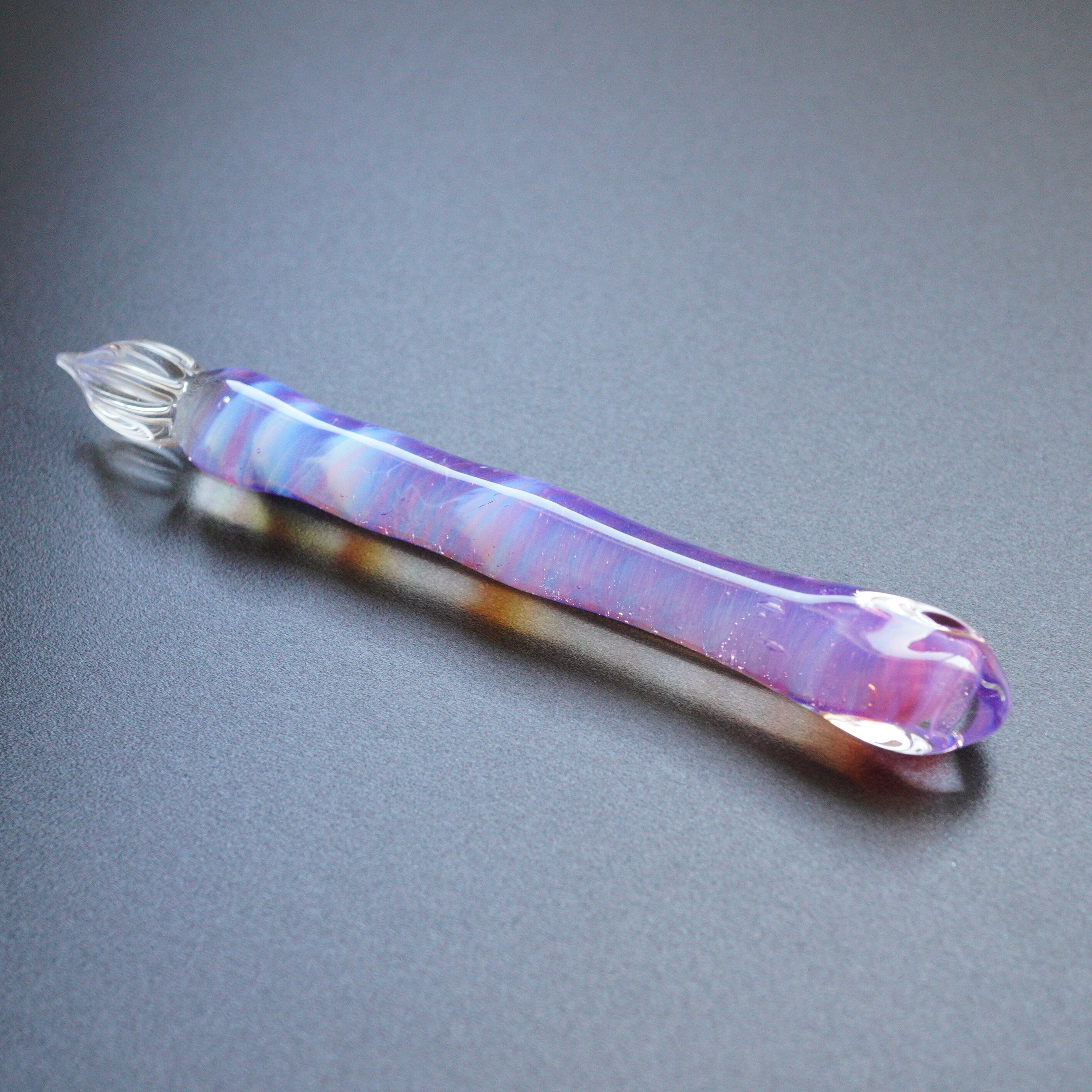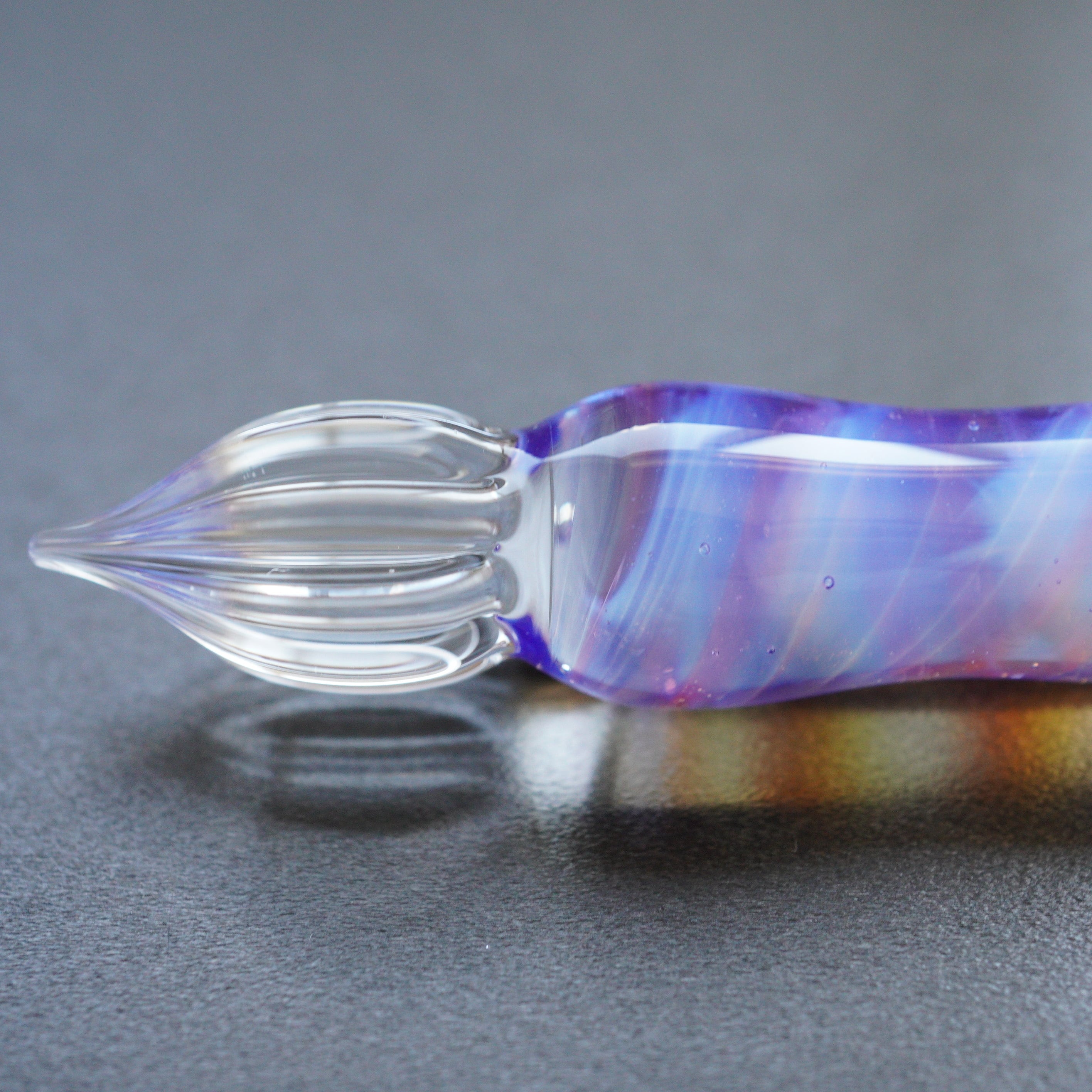 赤と青が混ざったような月の光の色合い、模様のガラスペンです。