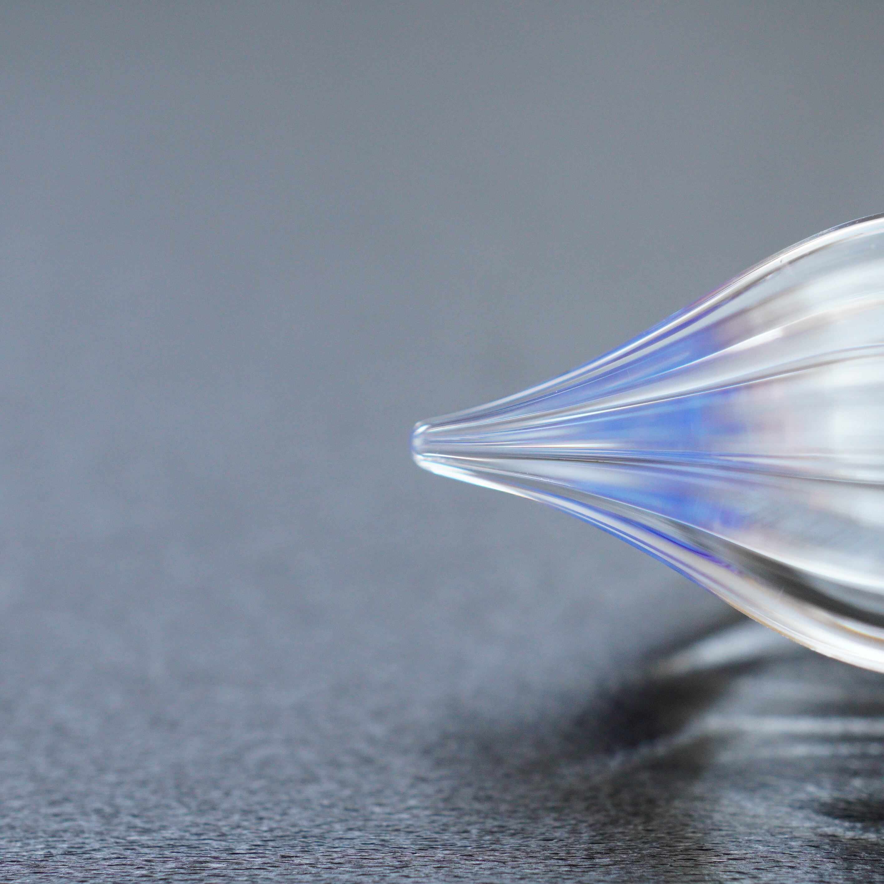 形によるものと、制作の時にガラスにかかる負荷を減らしたので、かく時に欠けにくくなったと思います。