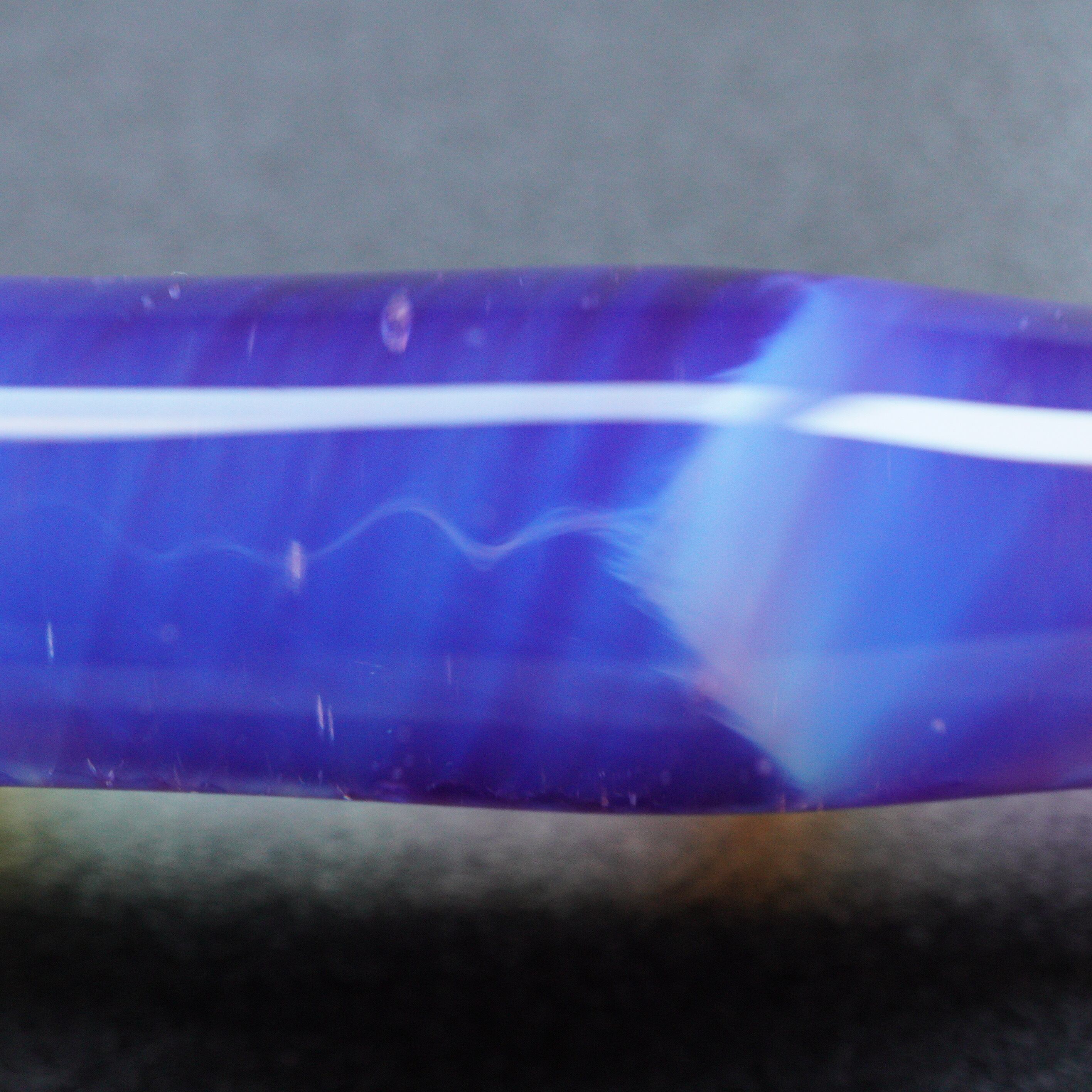 青と紫が混ざったような月の光の色合い、模様のガラスペンです。