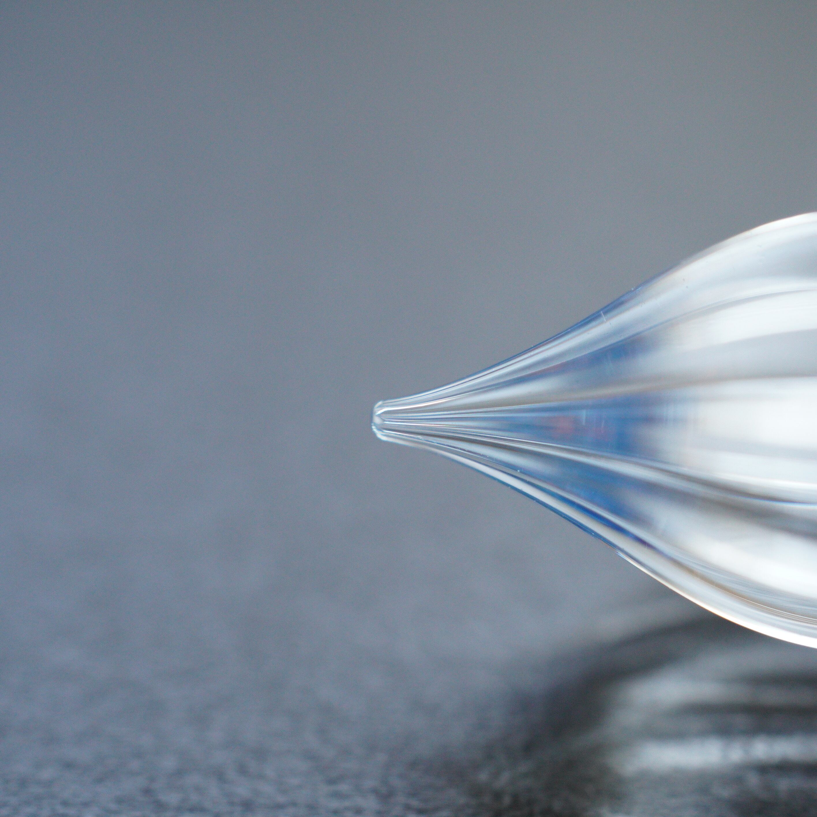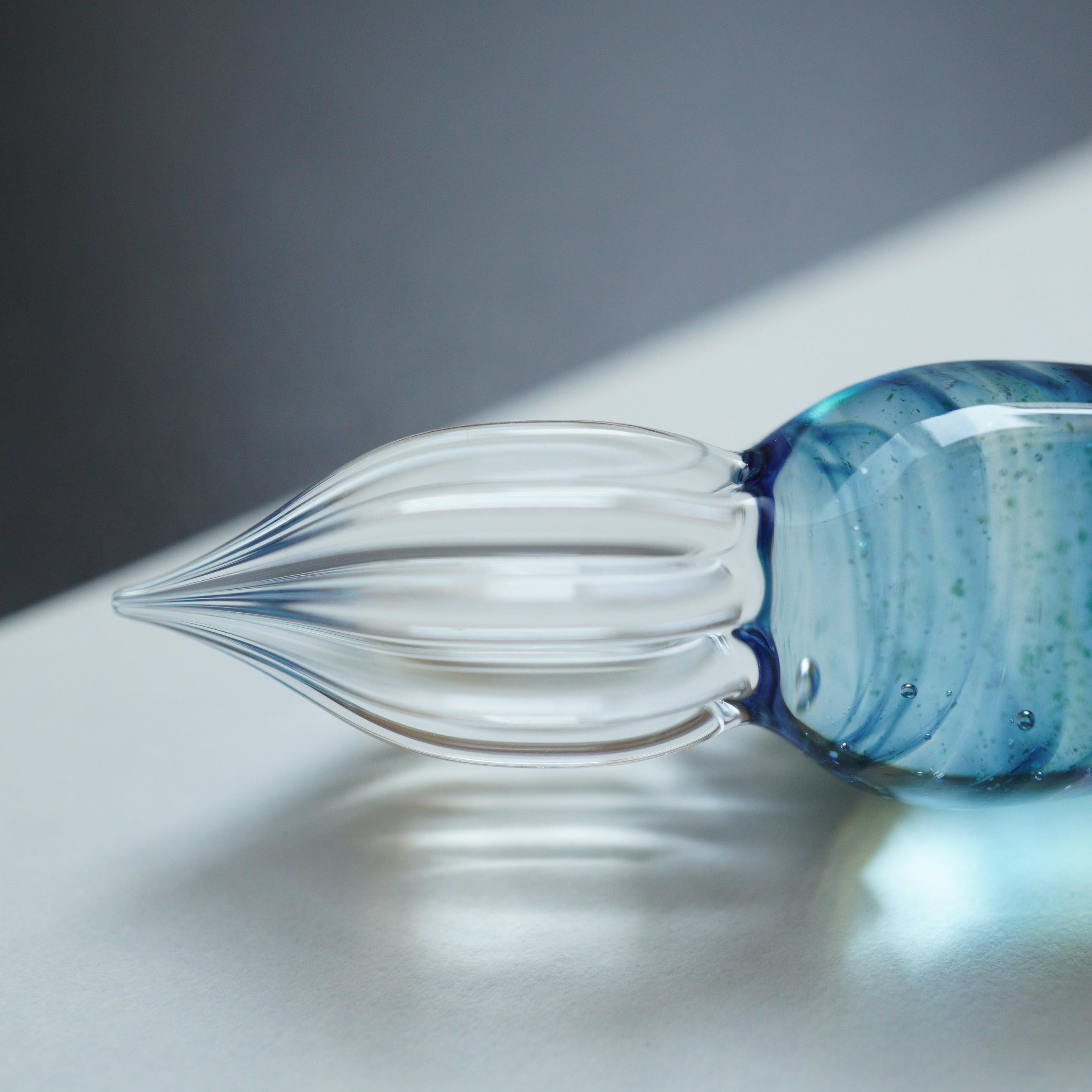 形によるものと、制作の時にガラスにかかる負荷を減らしたので、かく時に欠けにくくなったと思います。