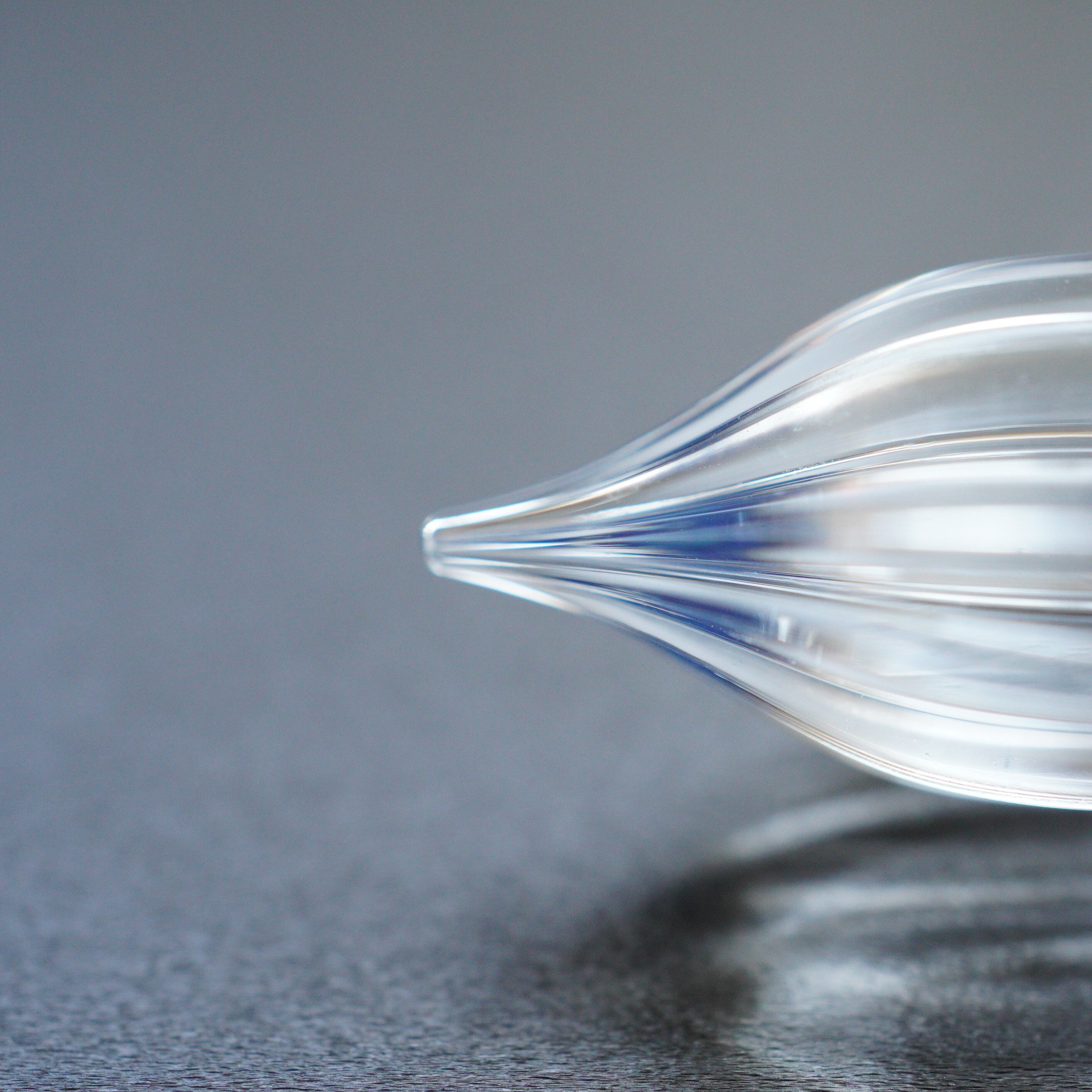 形によるものと、制作の時にガラスにかかる負荷を減らしたので、かく時に欠けにくくなったと思います。