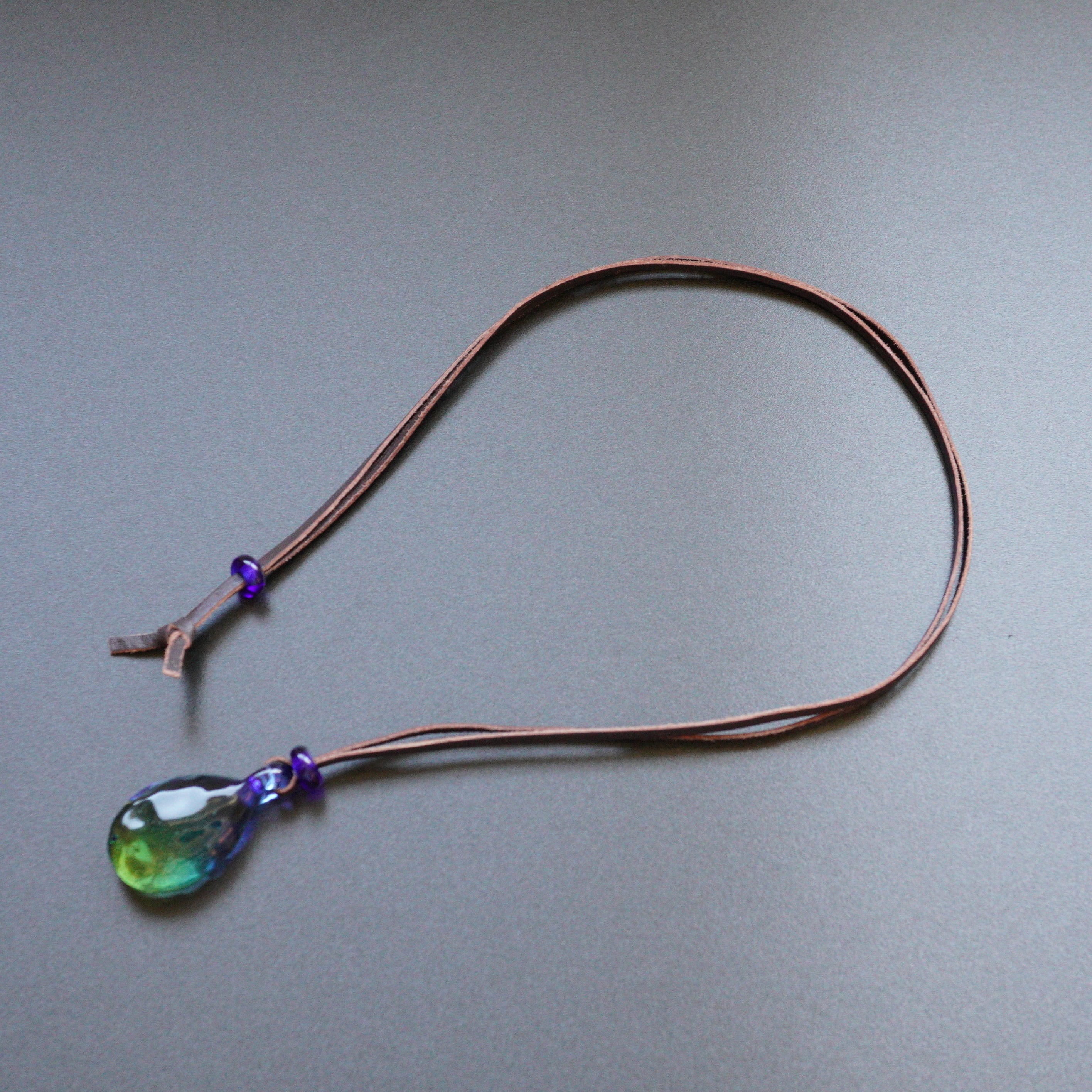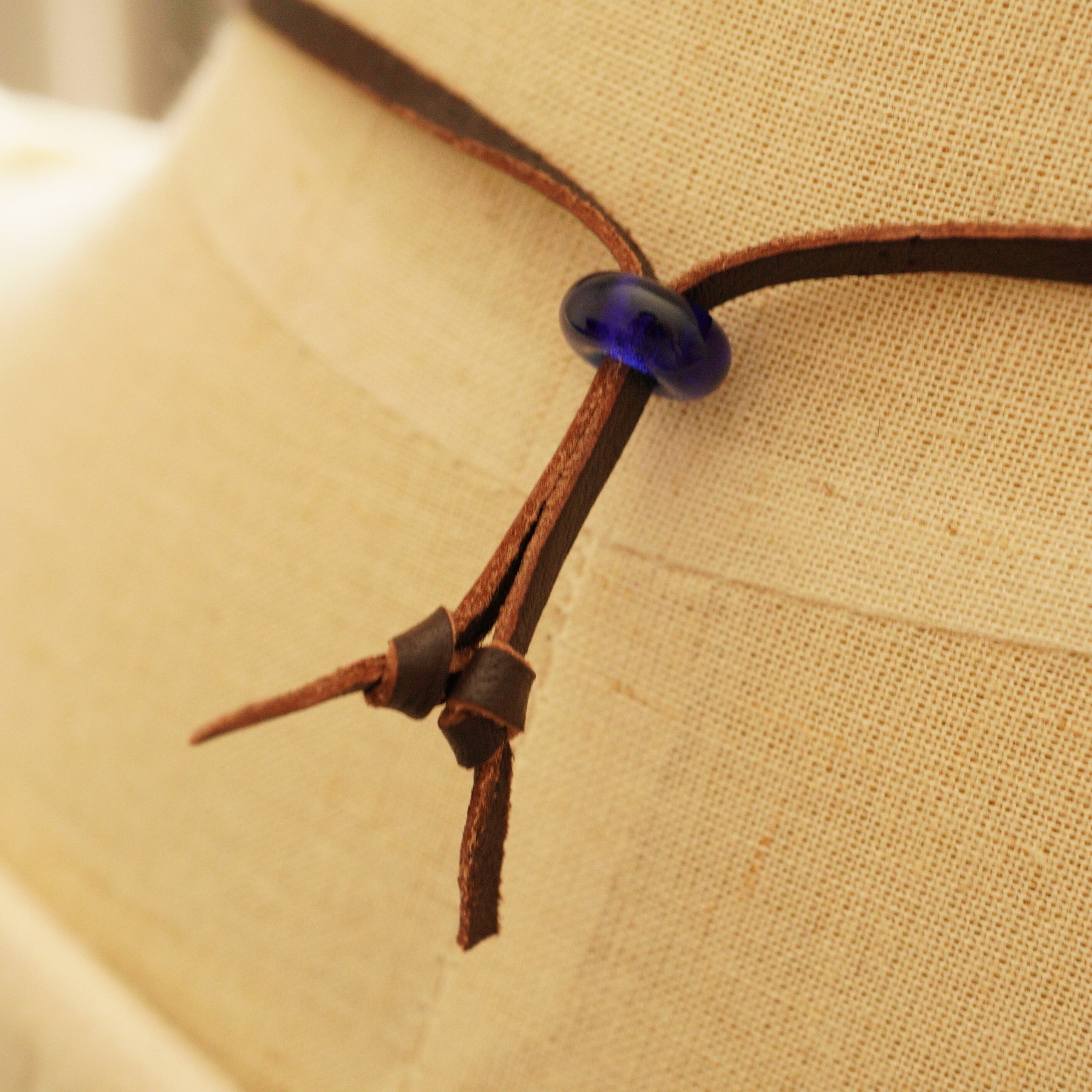 革紐の長さは80cmで後ろのビーズをスライドすることで長さを調節できます。