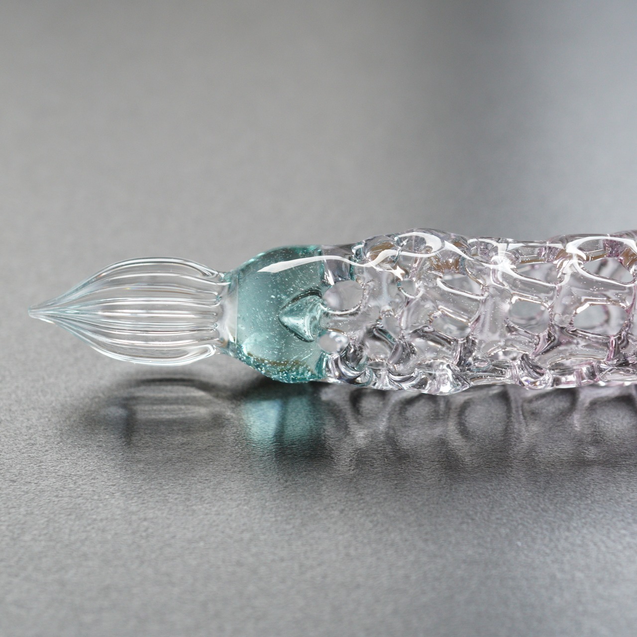 10.ペン先の溝を割れにくい形に作り、また制作時ガラスにかかる負荷を減らしているので欠けにくい。