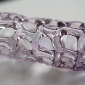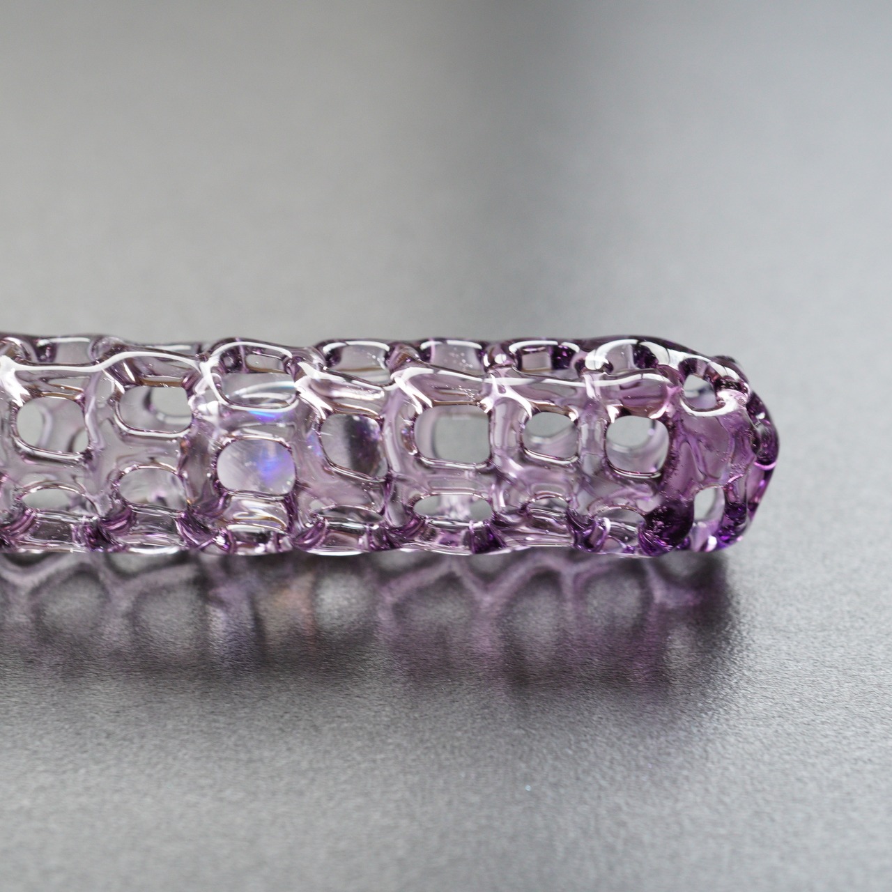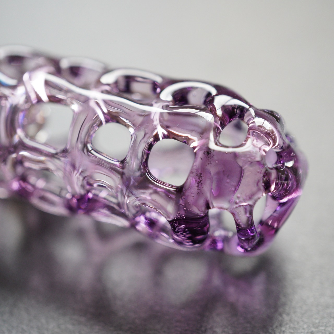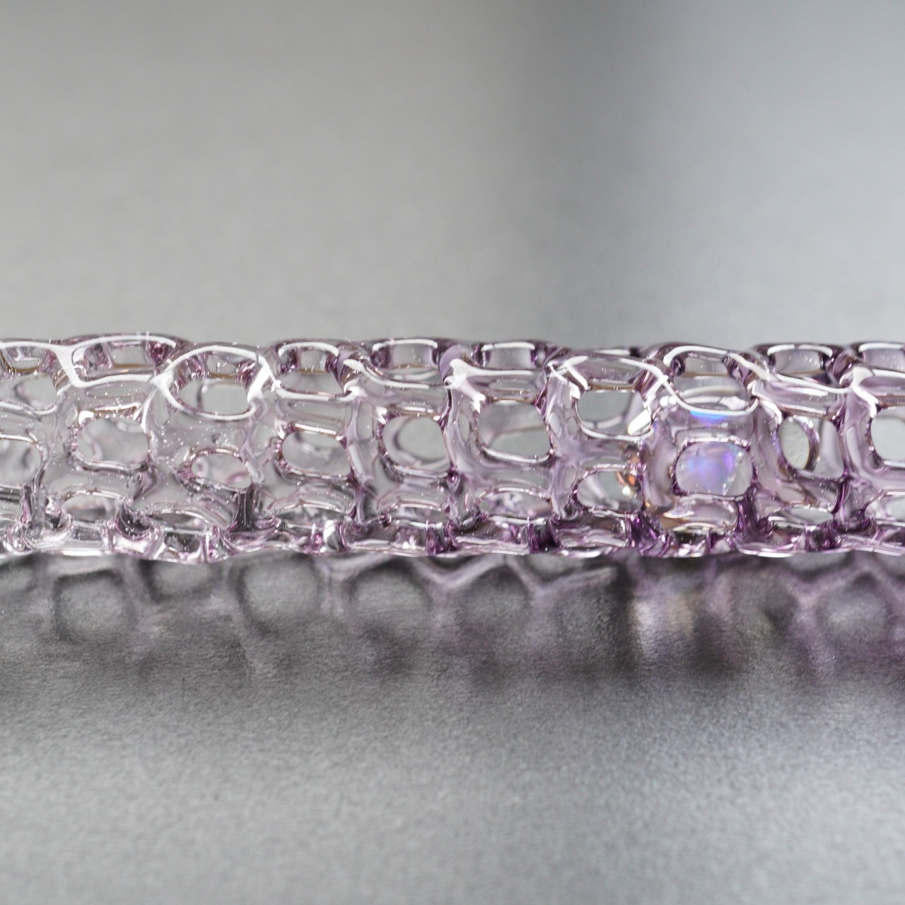 ガラスで作ったあみあみの中にオパールが入ったガラスを入れています。