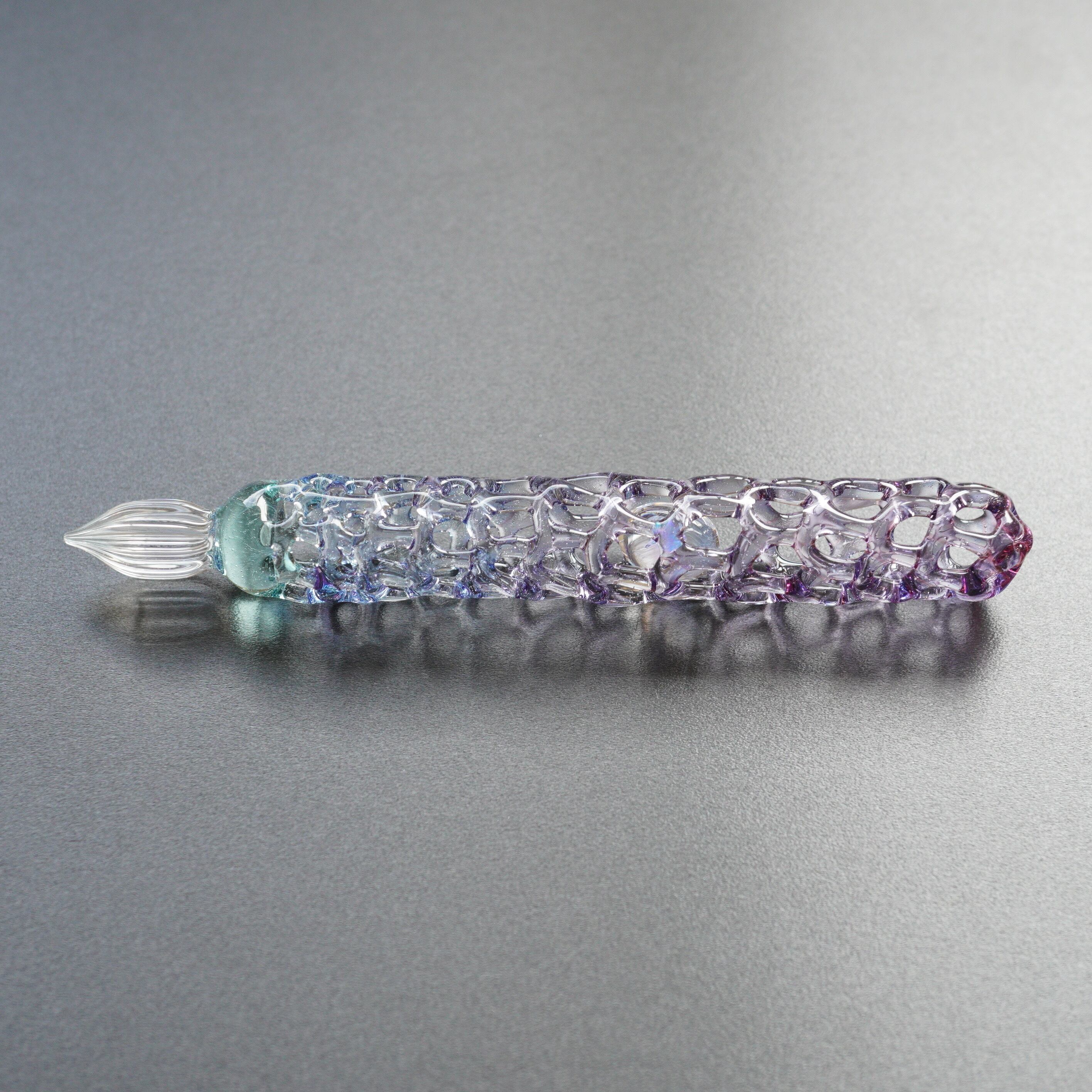 昼と夜の間の黄昏時のような色合いのグラデーションゆりかごガラスペンです。
