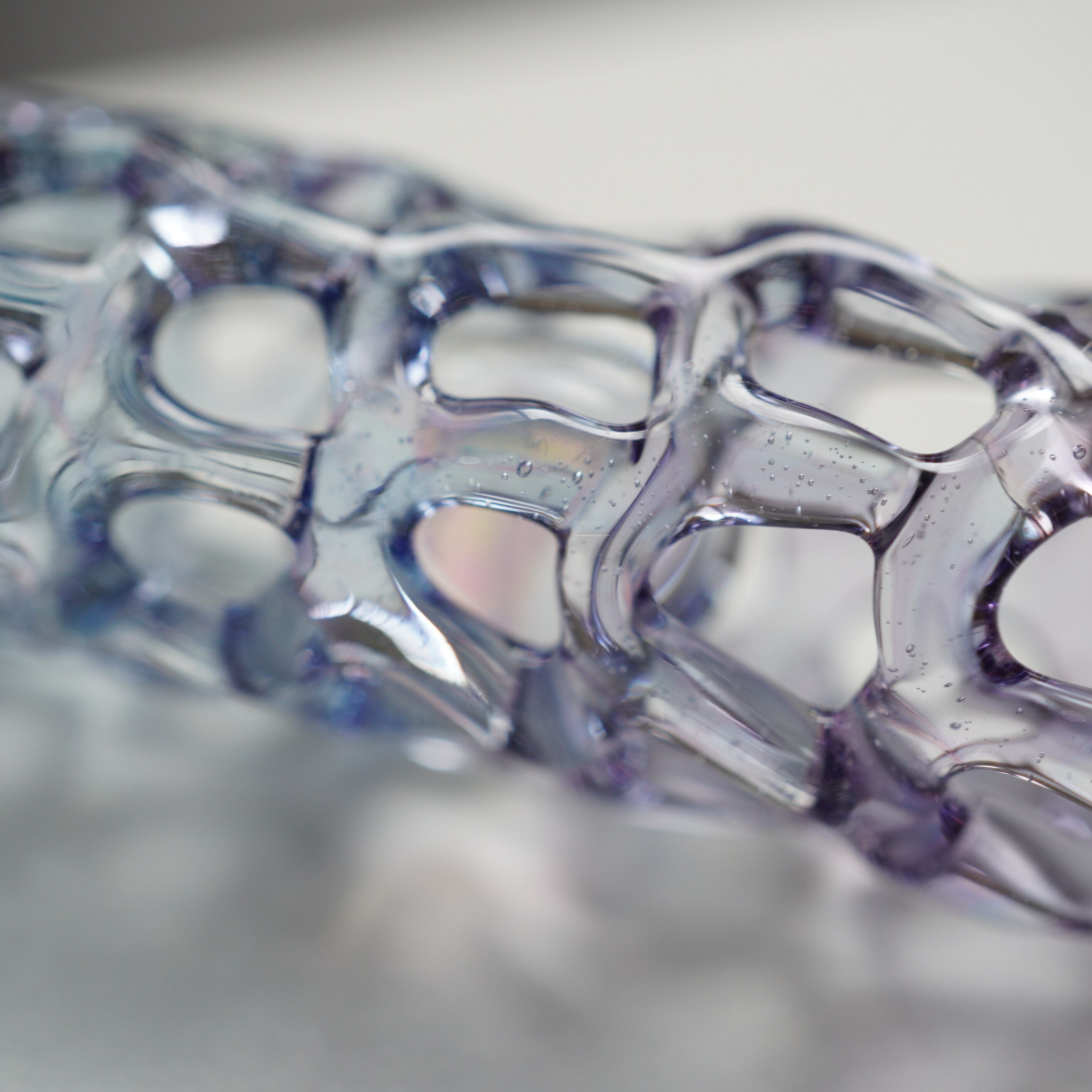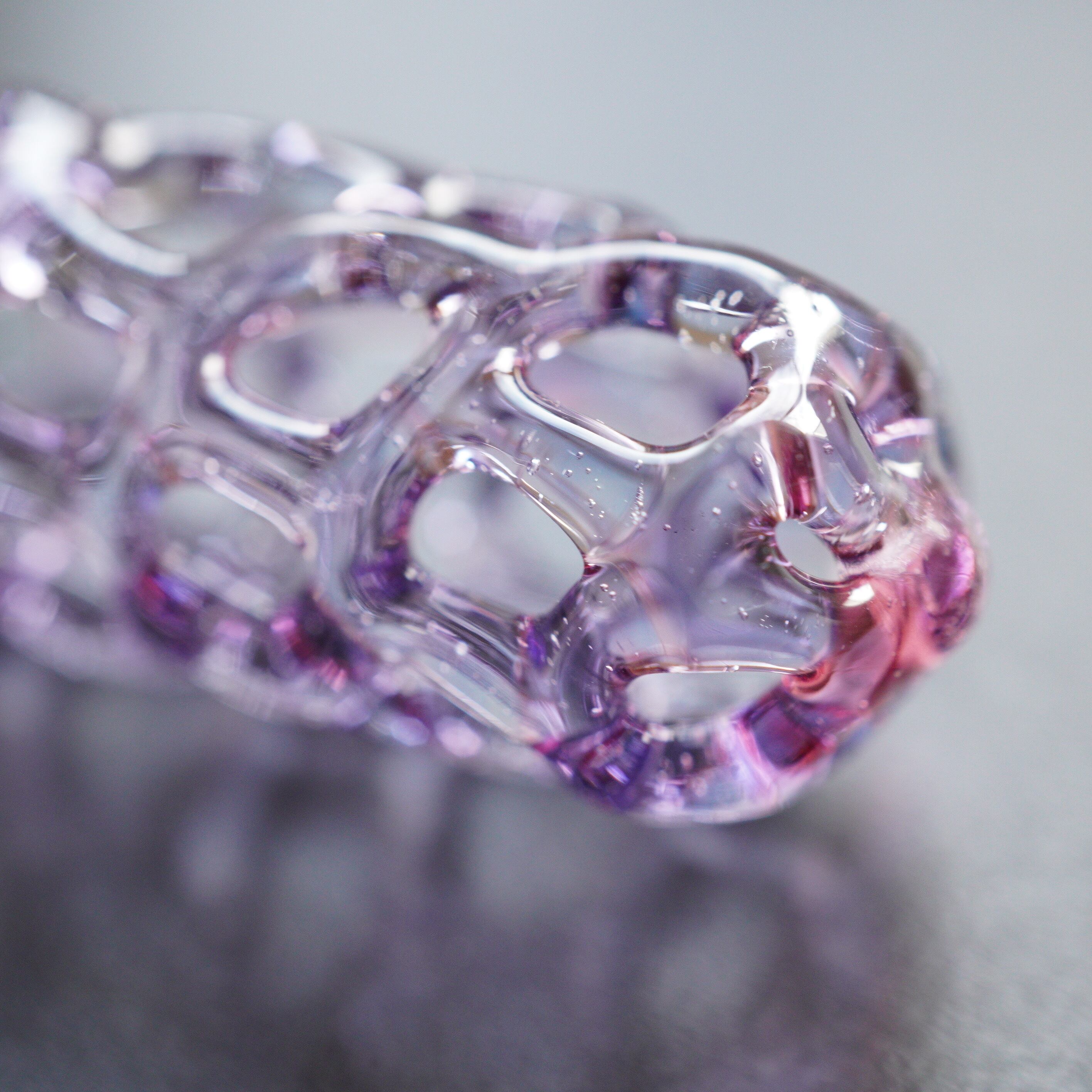 ガラスで作ったあみあみの中にオパールが入ったガラスを入れています。