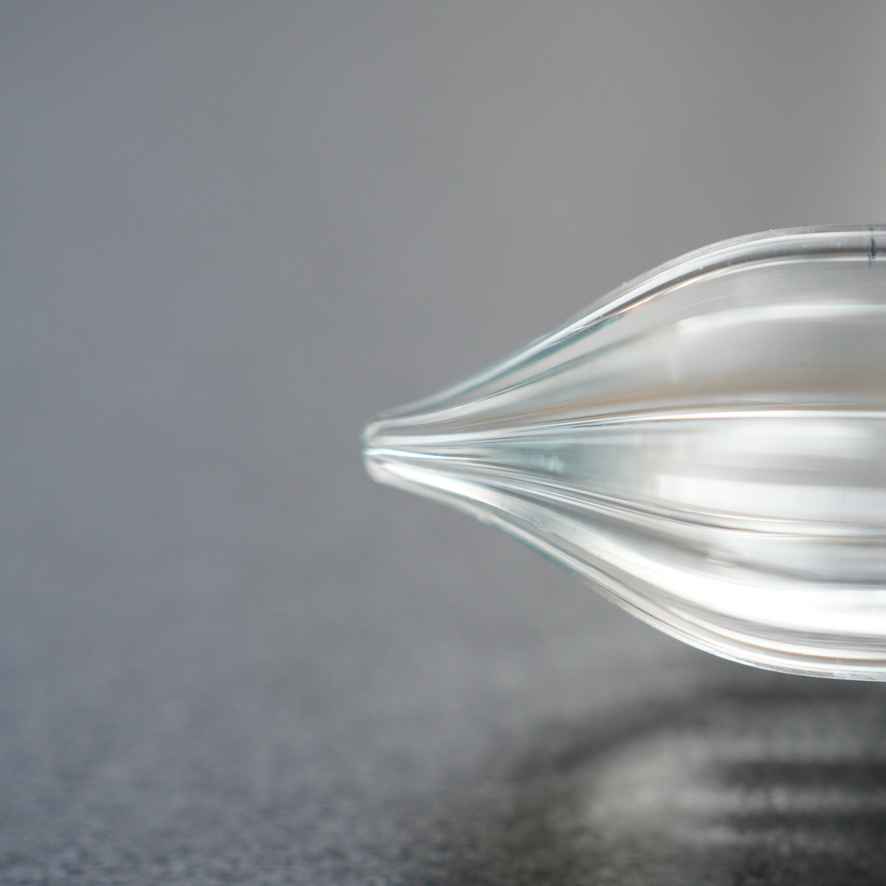 形によるものと、制作の時にガラスにかかる負荷を減らしたので、かく時に欠けにくくなったと思います。