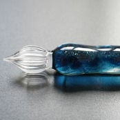 ラメブルーとクリアを混ぜた夜の雰囲気を感じるガラスペンです。