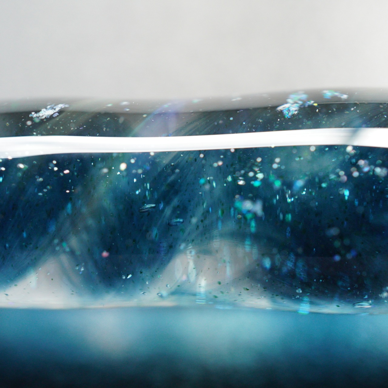 優しく守られた世界の中でガラスが転がり、ころころと音が鳴ります。
