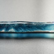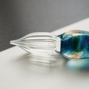 形によるものと、制作の時にガラスにかかる負荷を減らしたので、かく時に欠けにくくなったと思います。