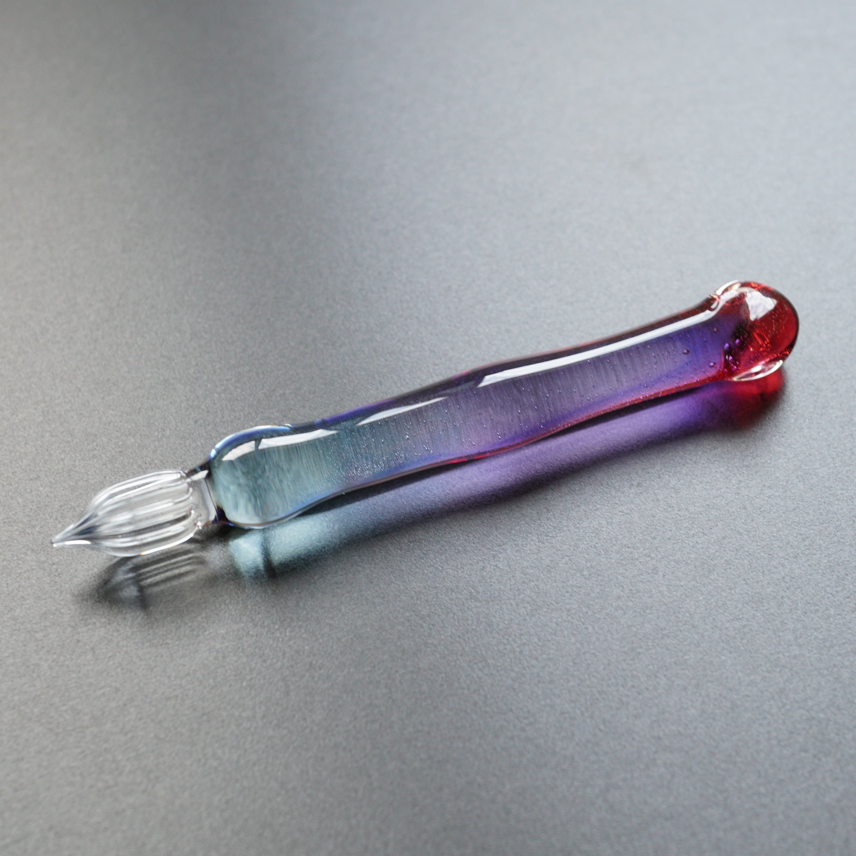 6.ガラスのかたまりを透明ガラスでコーティングし、引き伸ばしてつなぎ目のない軸を作っているので組成的に丈夫。(ゆりかごガラスペンは除く)
