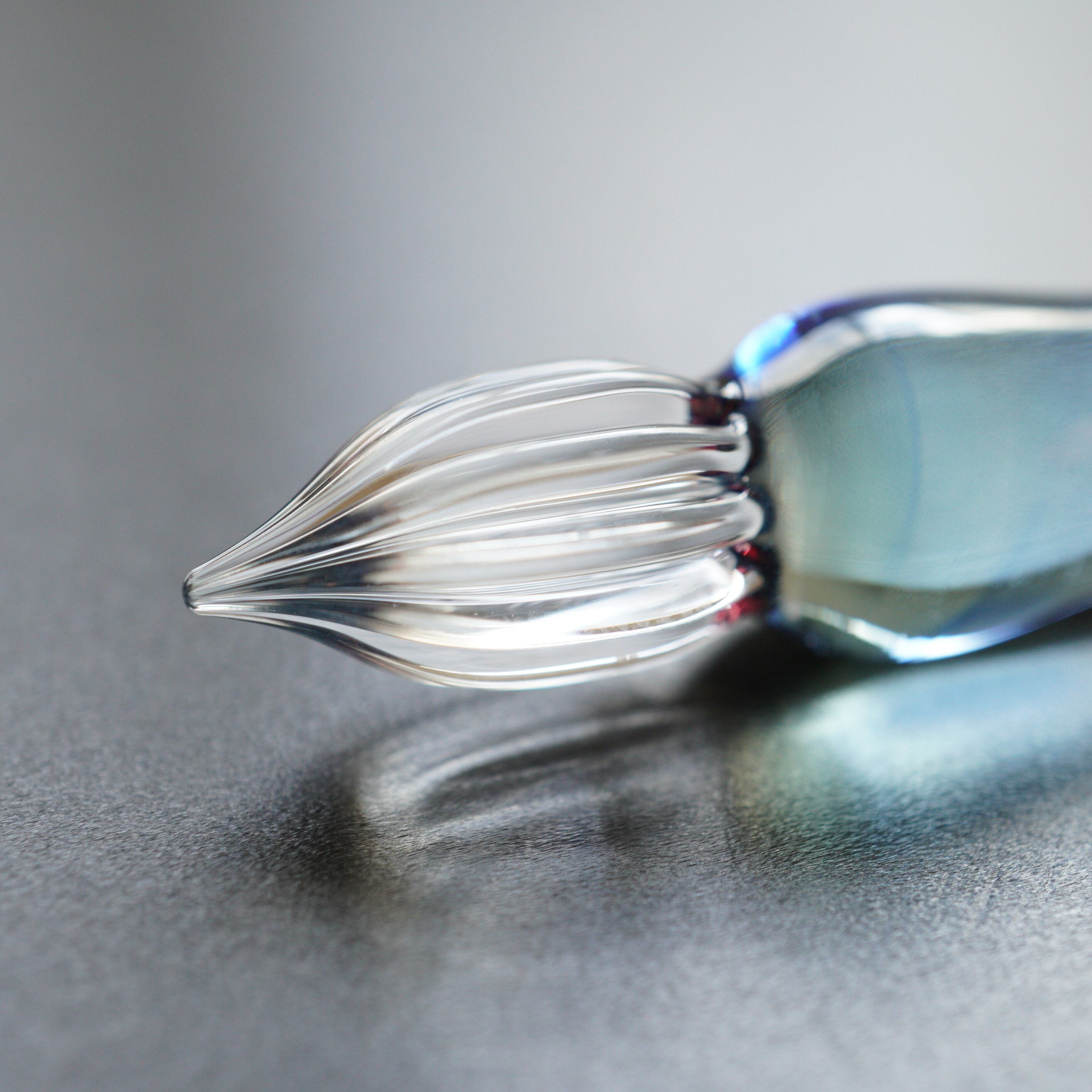 10.ペン先の溝を割れにくい形に作り、また制作時ガラスにかかる負荷を減らしているので欠けにくい。