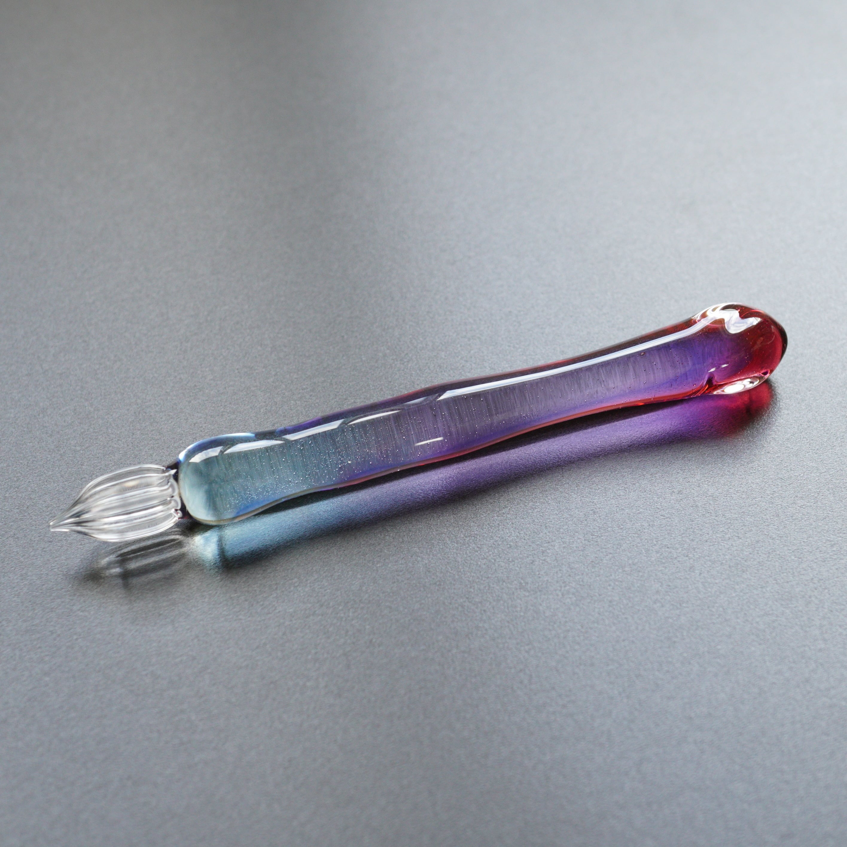 6.ガラスのかたまりを透明ガラスでコーティングし、引き伸ばしてつなぎ目のない軸を作っているので組成的に丈夫。(ゆりかごガラスペンは除く)