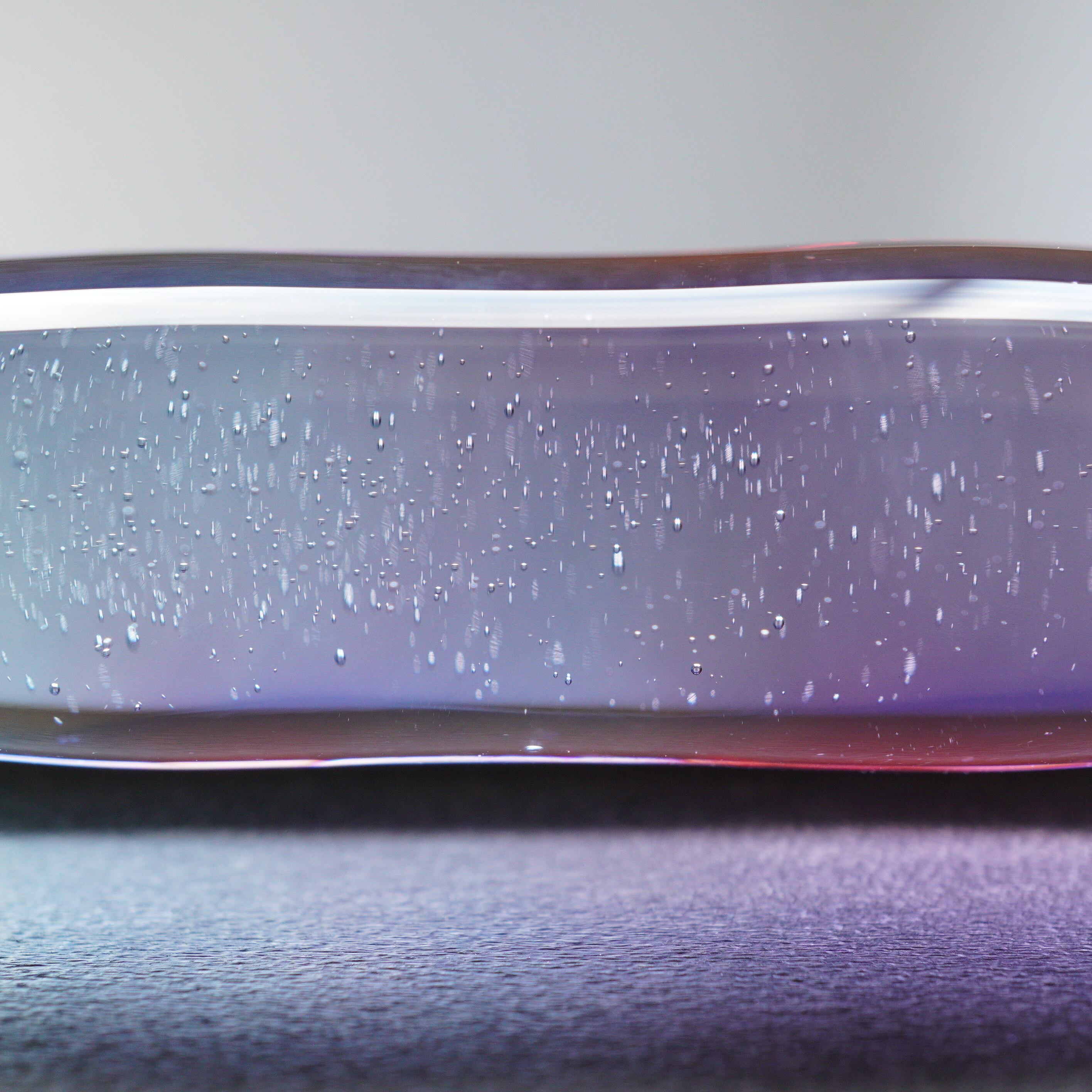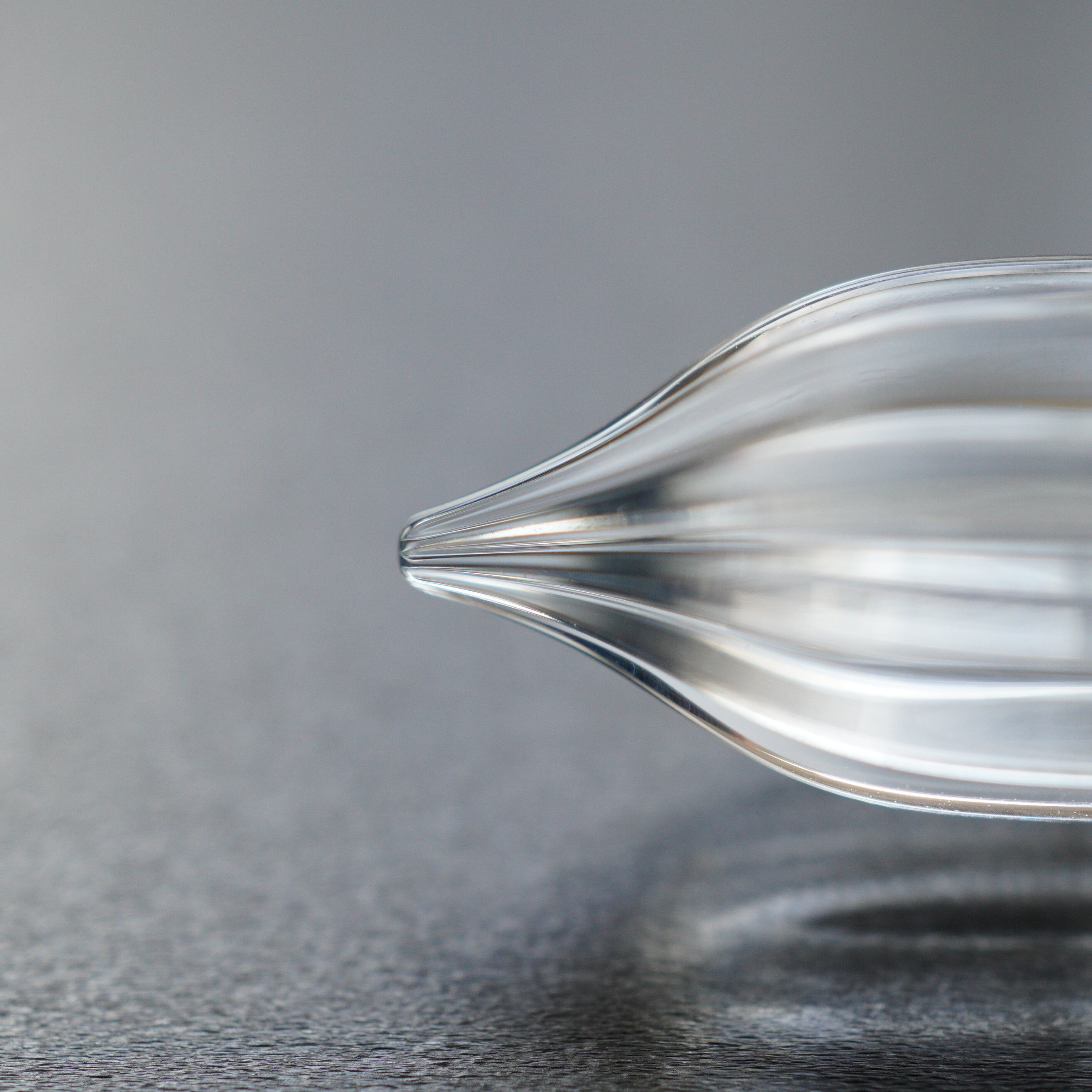 形によるものと、制作の時にガラスにかかる負荷を減らしたので、かく時に欠けにくくなったと思います。