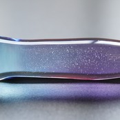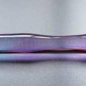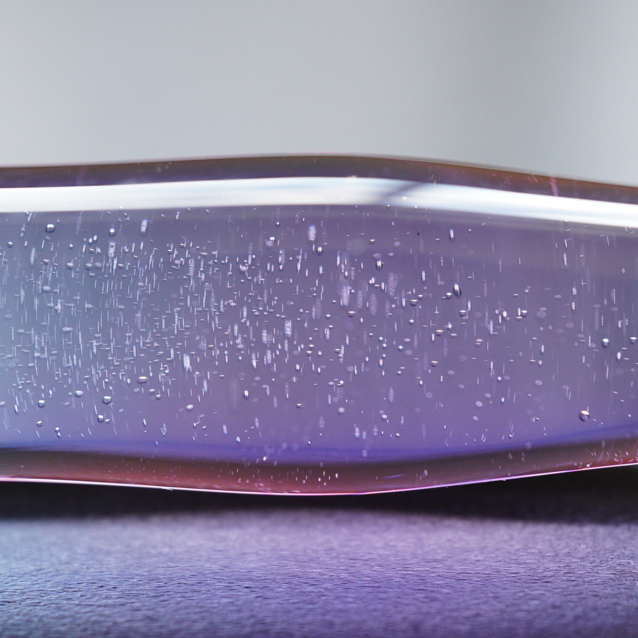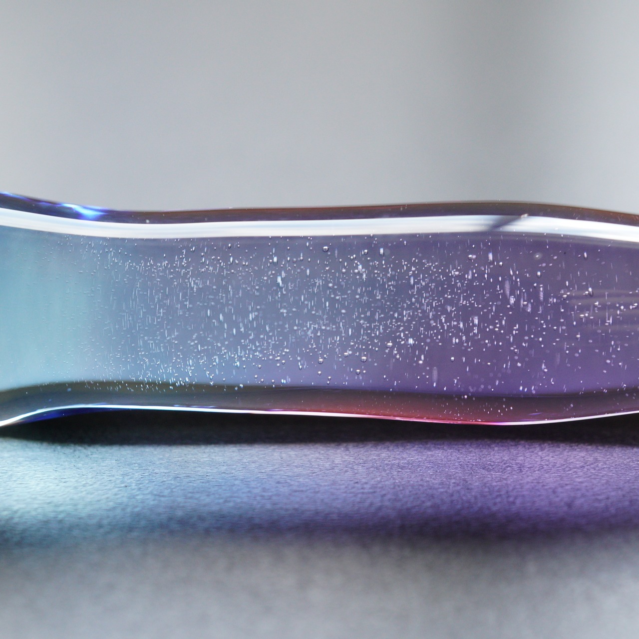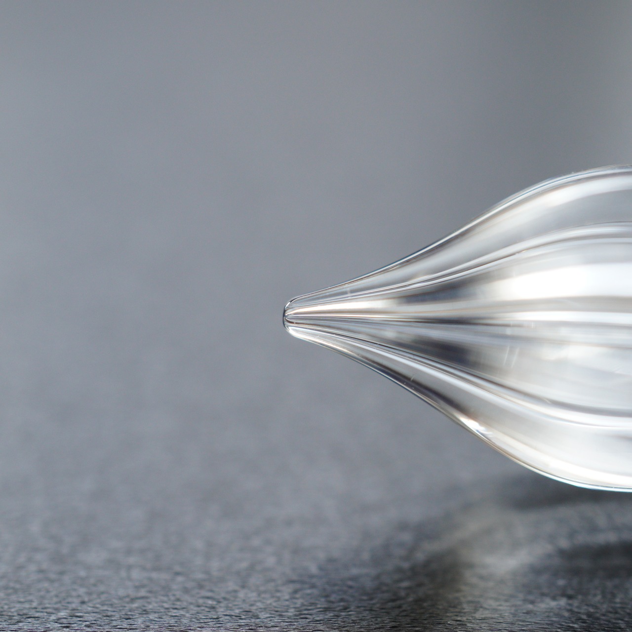 形によるものと、制作の時にガラスにかかる負荷を減らしたので、かく時に欠けにくくなったと思います。