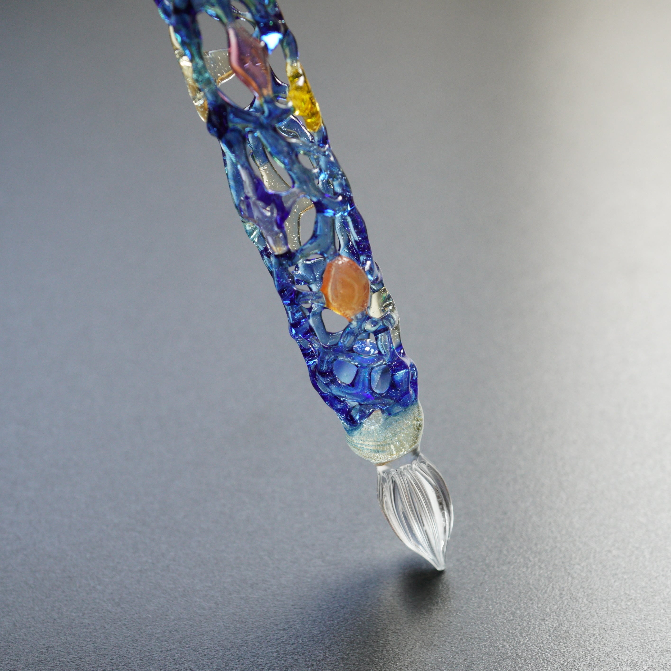 10.ペン先の溝を割れにくい形に作り、また制作時ガラスにかかる負荷を減らしているので欠けにくい。