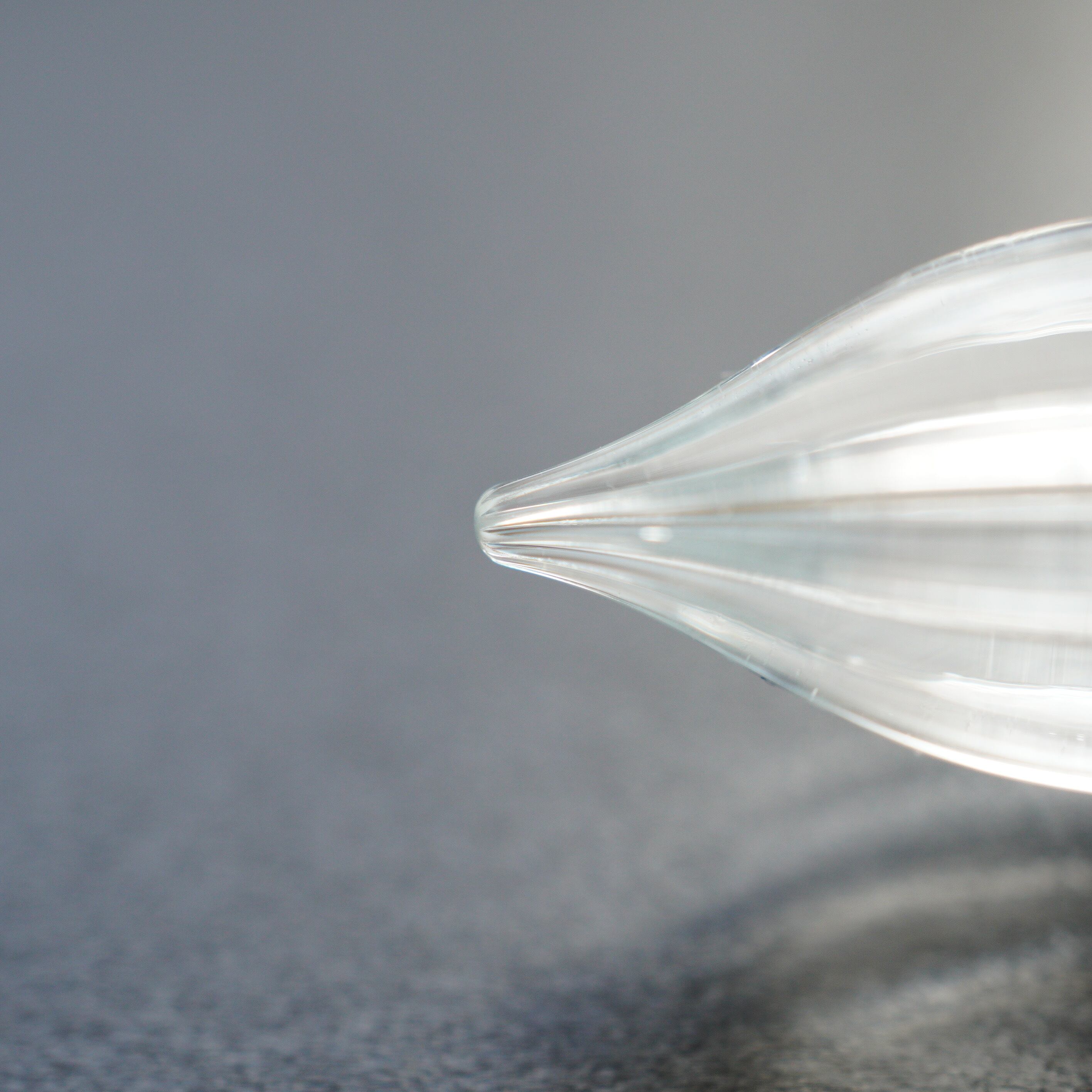 形によるものと、制作の時にガラスにかかる負荷を減らしたので、かく時に欠けにくくなったと思います。