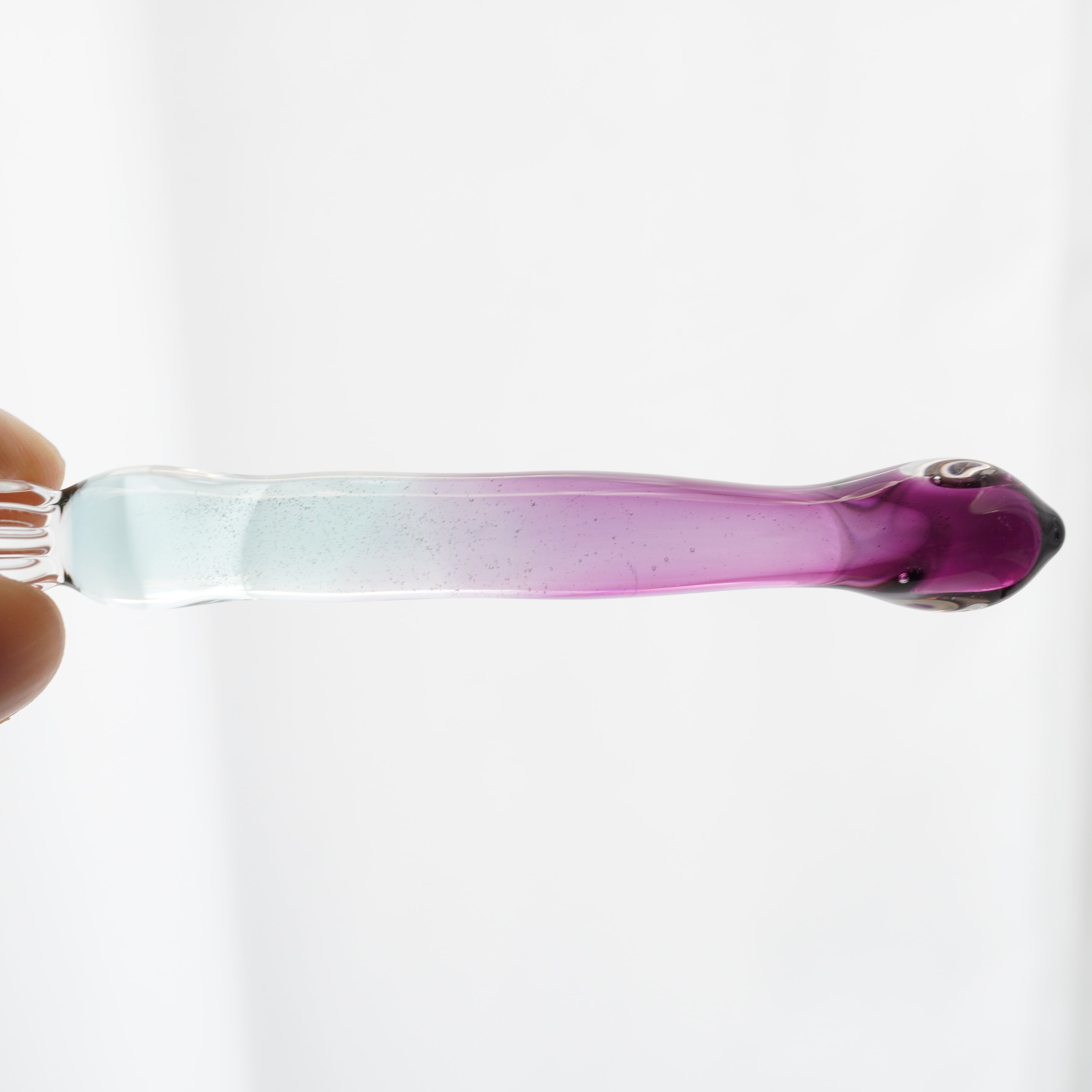 ガラスペンの大きさ、重さ、字幅、試し書き、書き心地などの個体情報を最後の写真に記載しています。書き心地は作家の感想で目安です。試し書きにあるラメインクは「ギター スパークルインキ ベリーパープル」です。