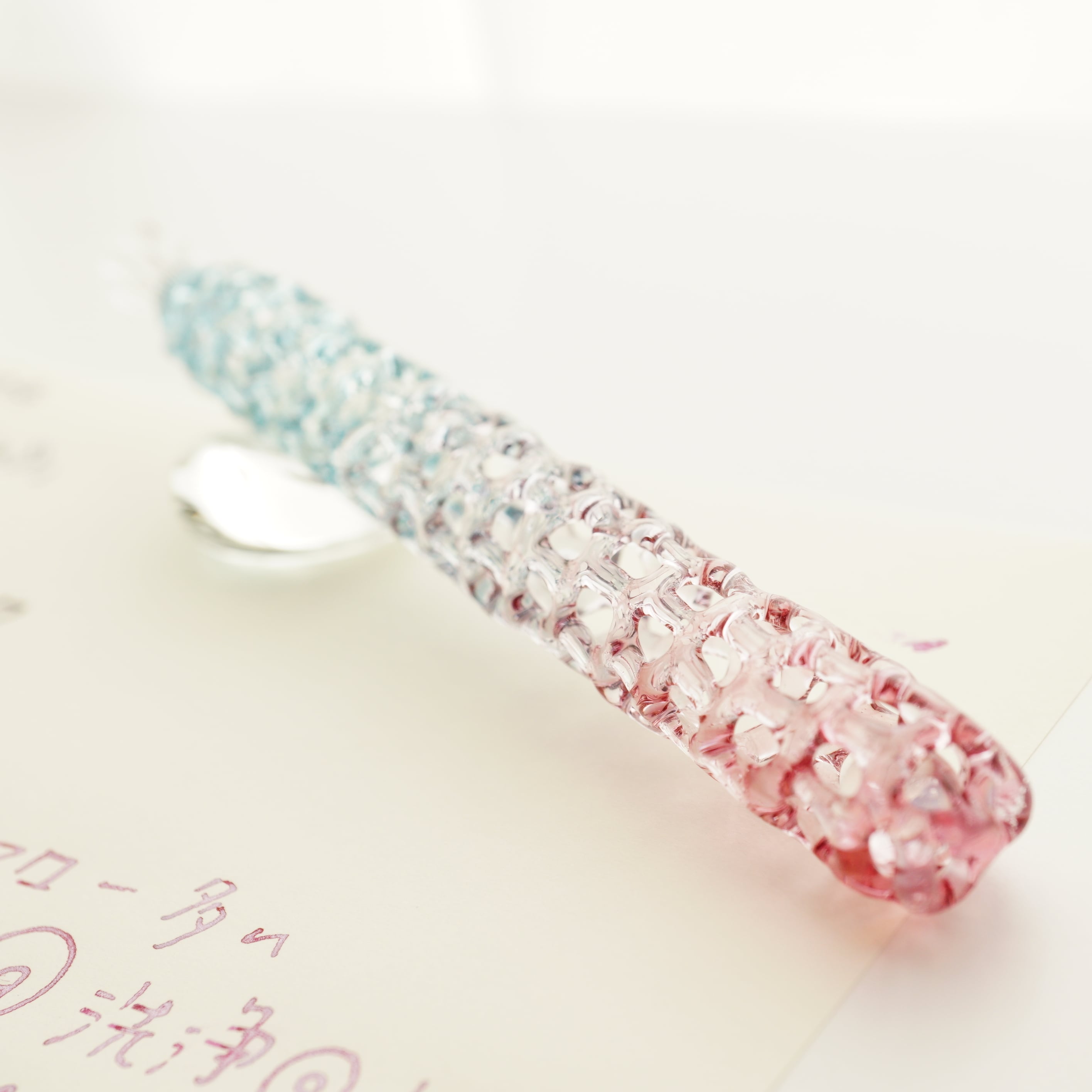 6.ガラスのかたまりを透明ガラスでコーティングし、引き伸ばしてつなぎ目のない軸を作っているので組成的に丈夫。(ゆりかごガラスペンは除く)