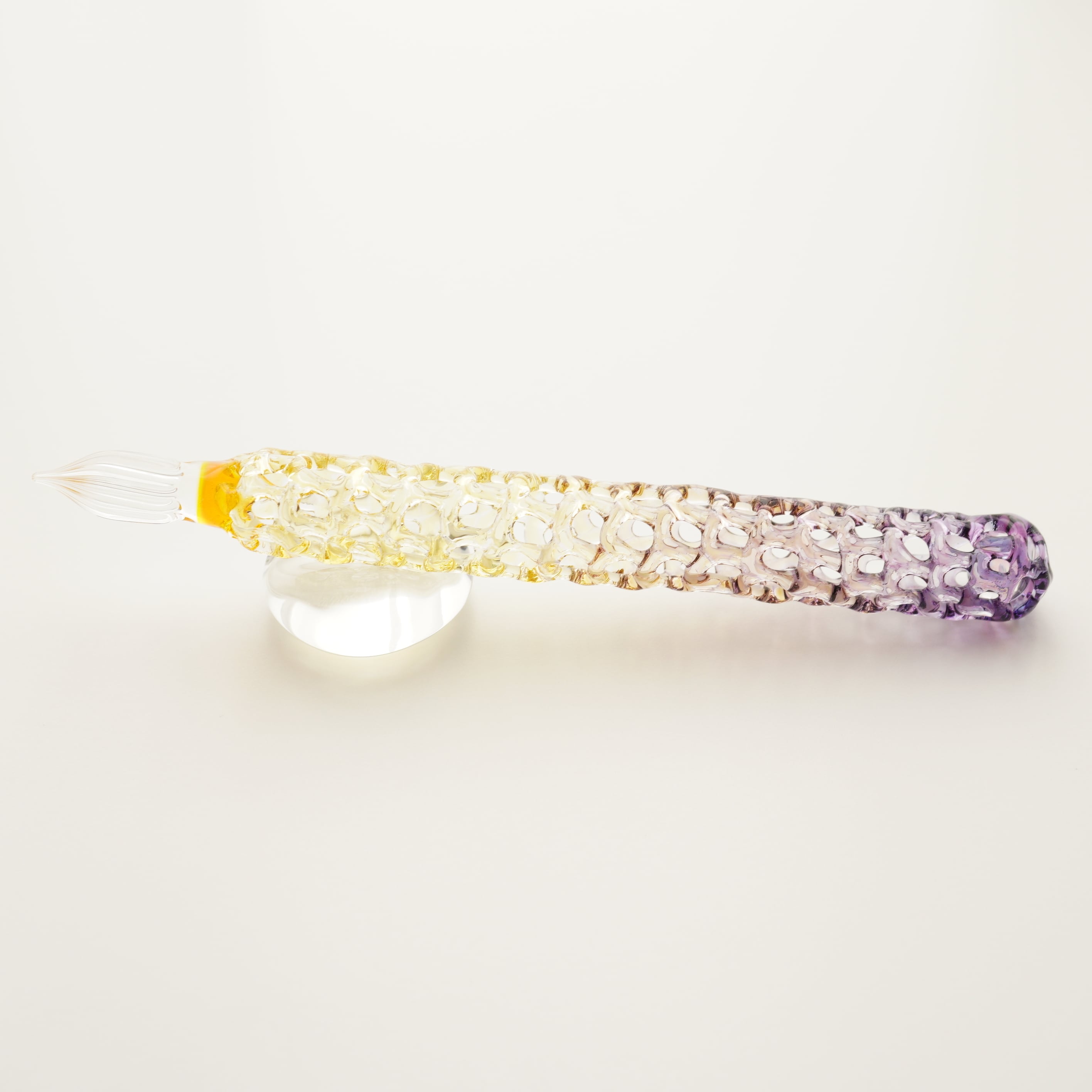 焼き芋の皮の紫と中の黄色がグラデーションしていくゆりかごガラスペンです。