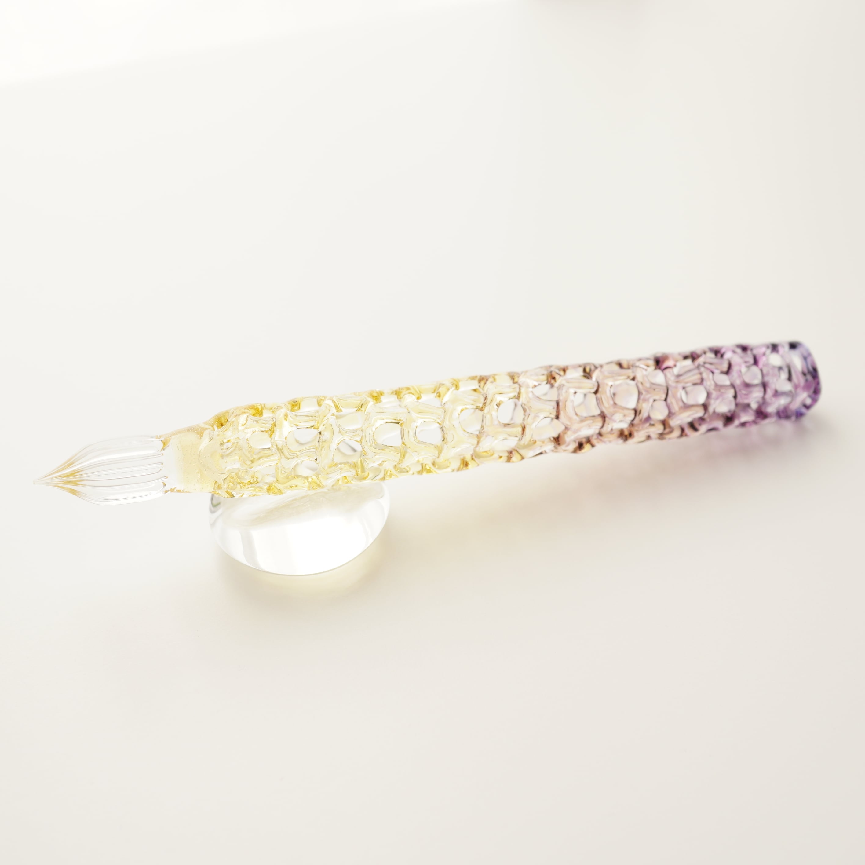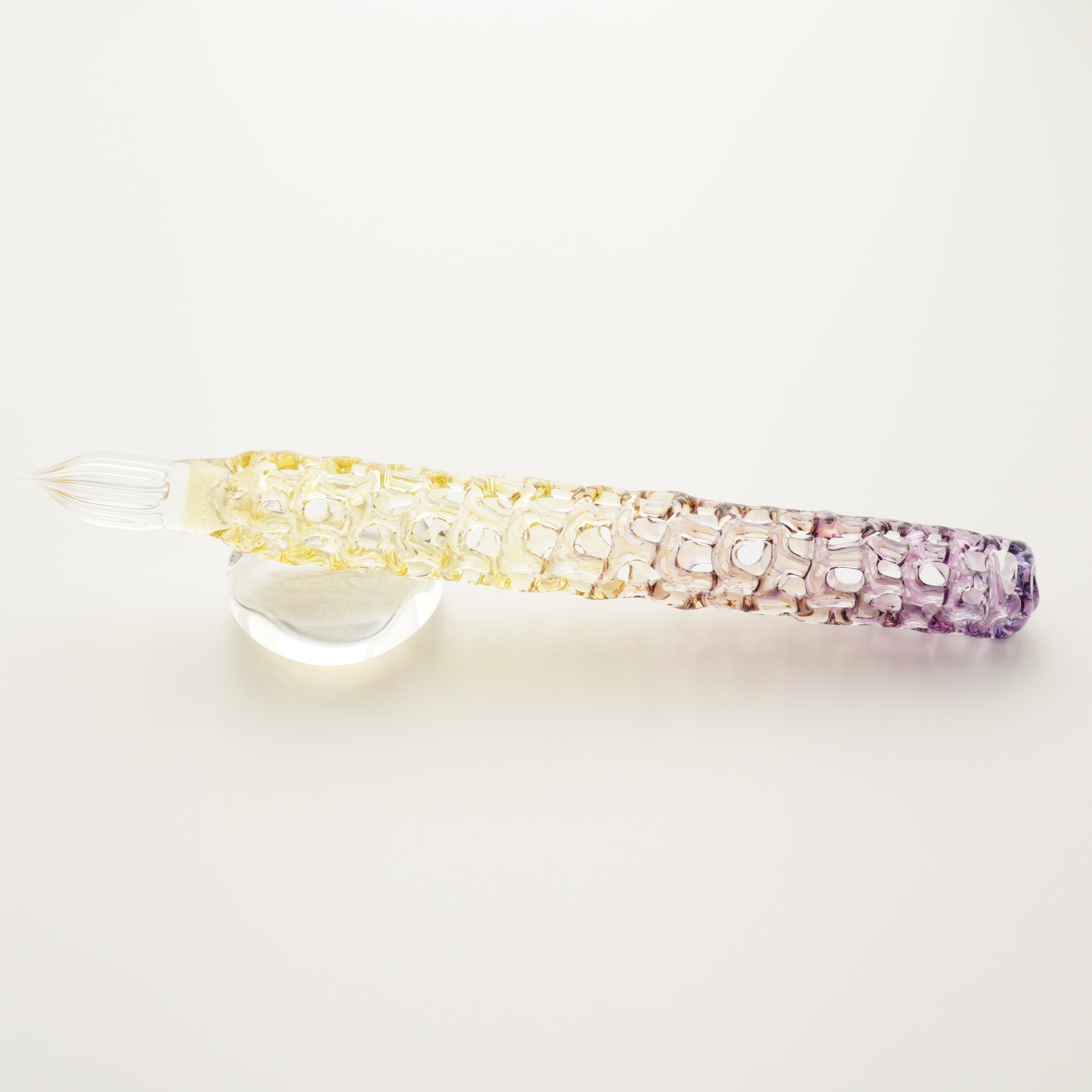 焼き芋の皮の紫と中の黄色がグラデーションしていくそらかごガラスペンです。
