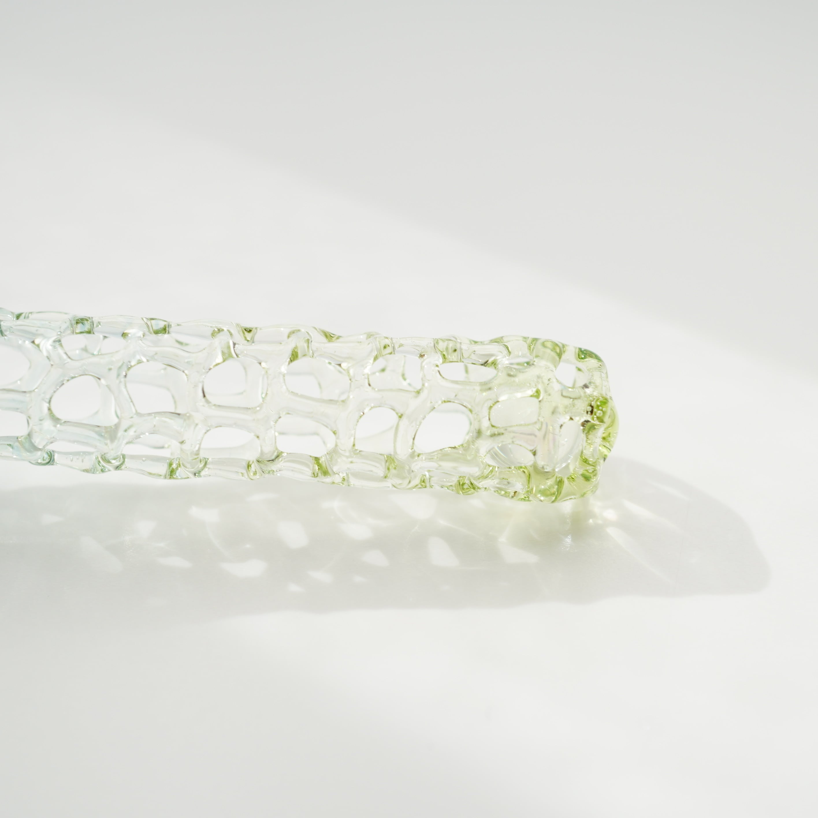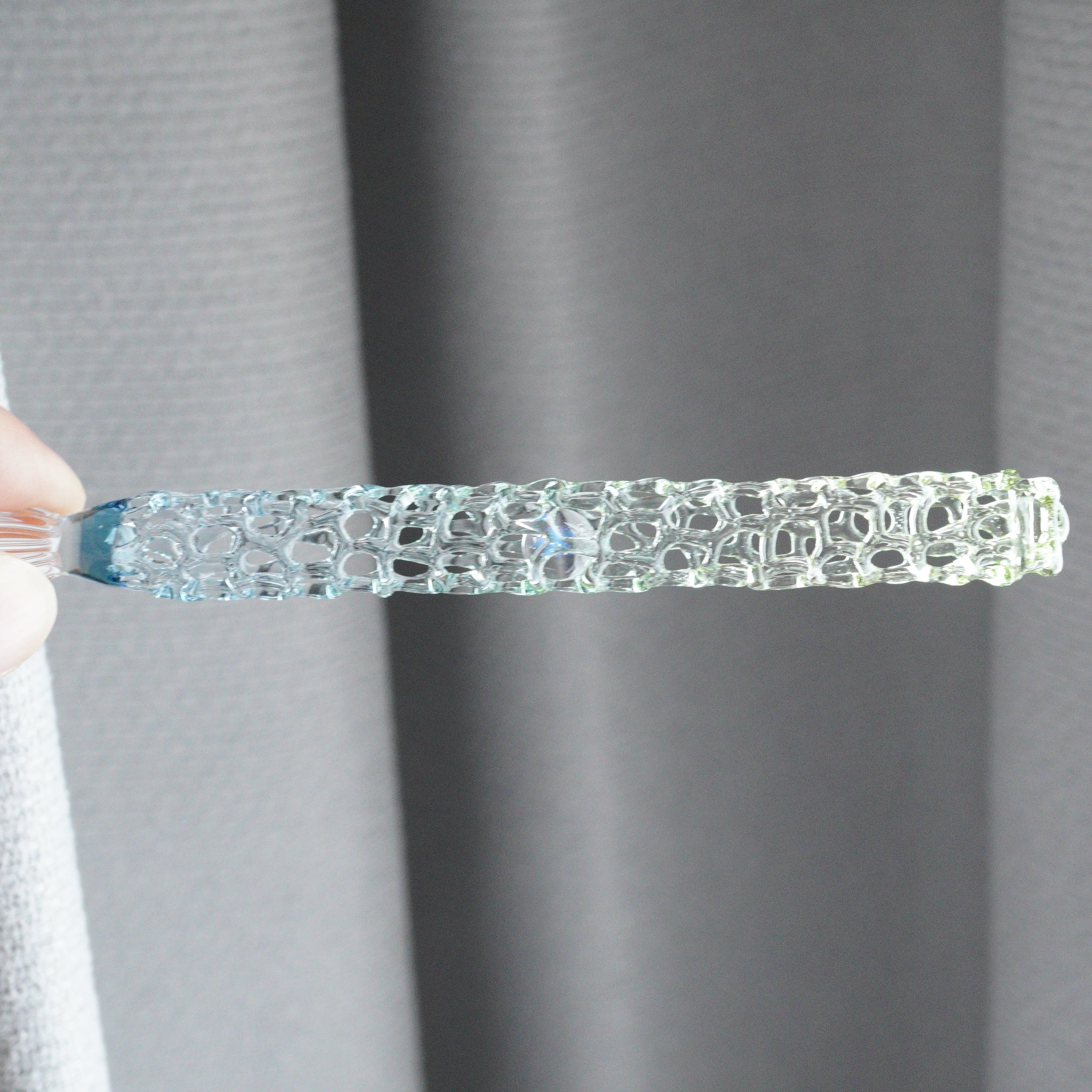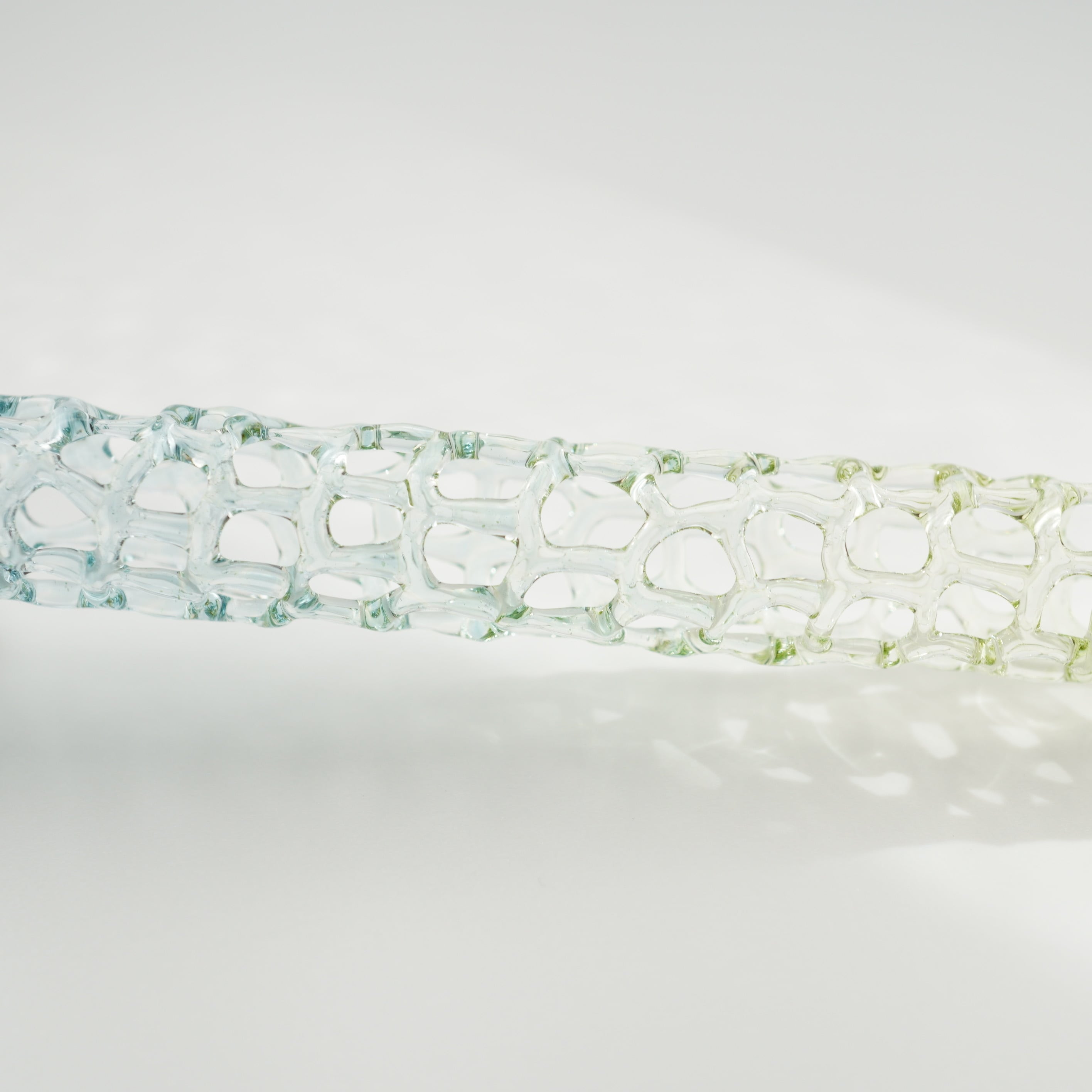 藤で作られたゆりかごのようにガラスを編みました。