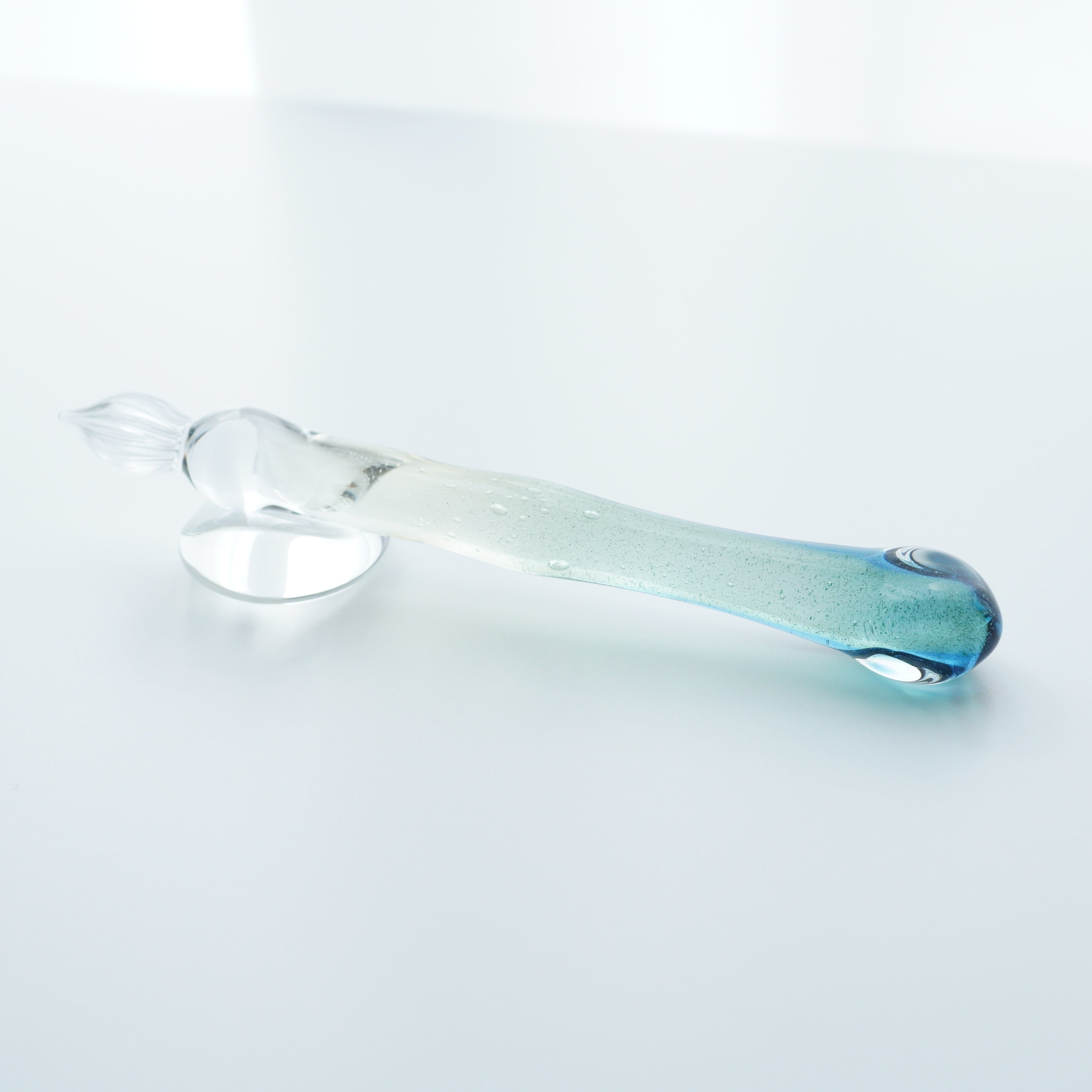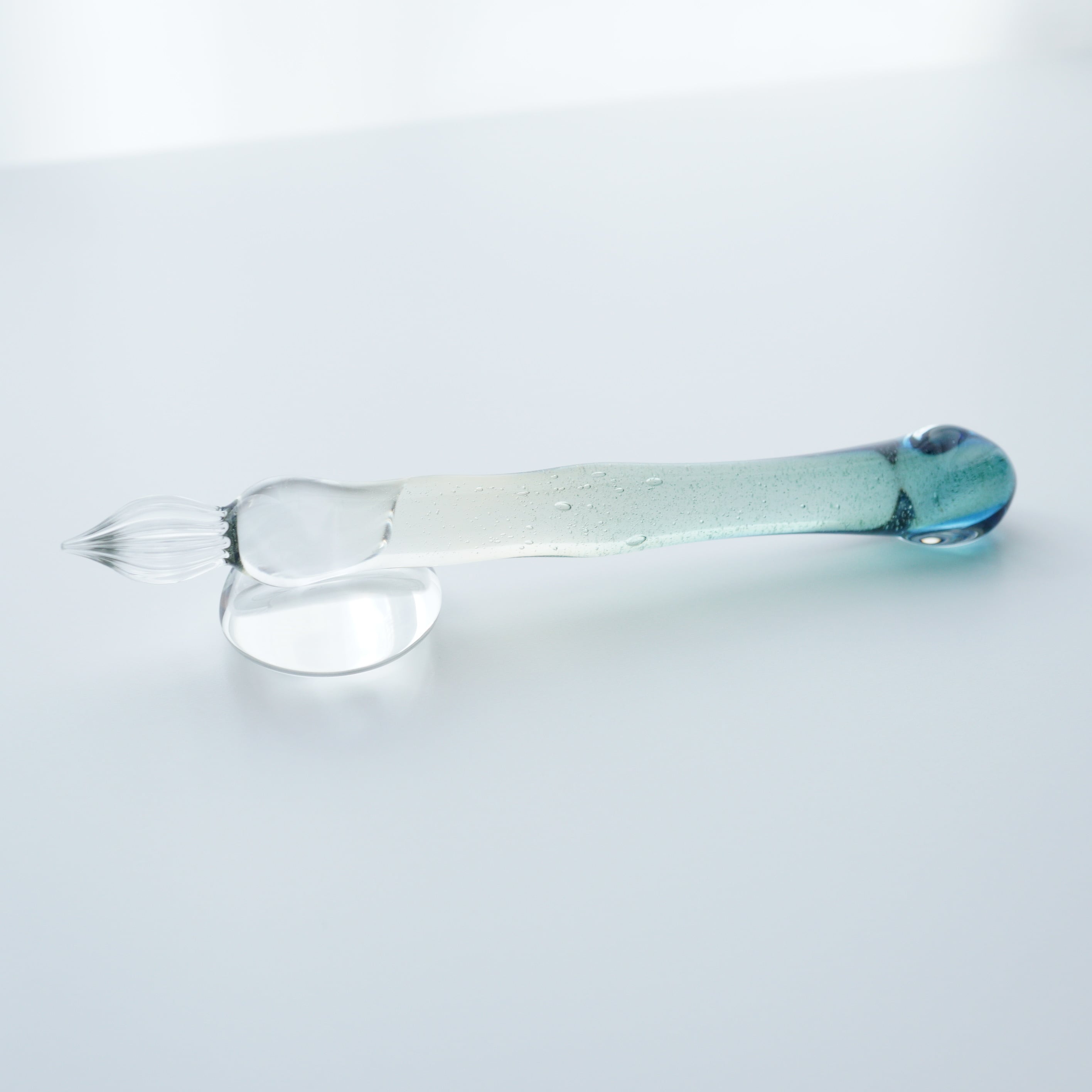 森の中に流れる清流に月の色が映ったような色合いのガラスペンです。ラメが入っています。