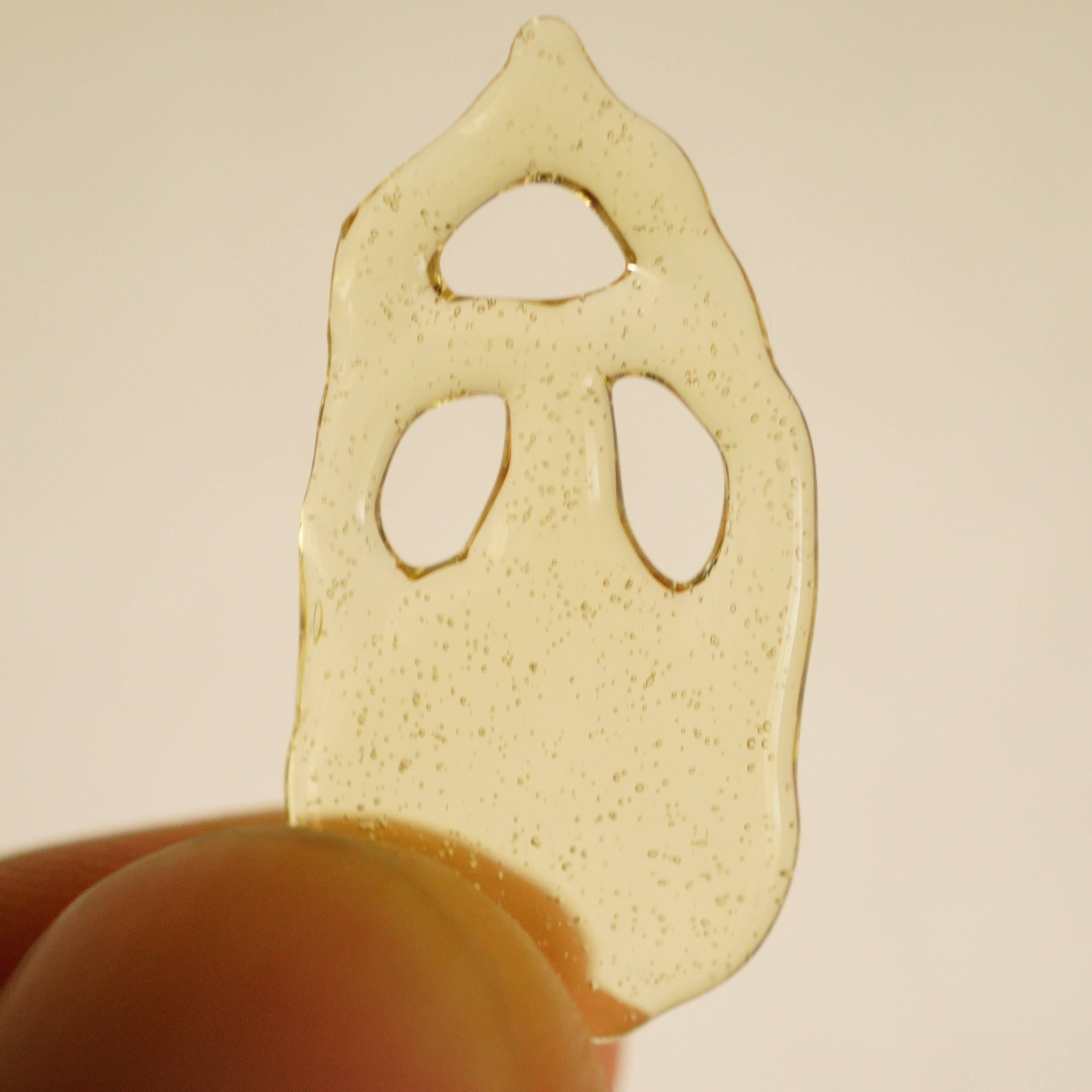 使っている黄色いガラスは蛍光灯や白熱球の光でピンク色に変わって見えます。