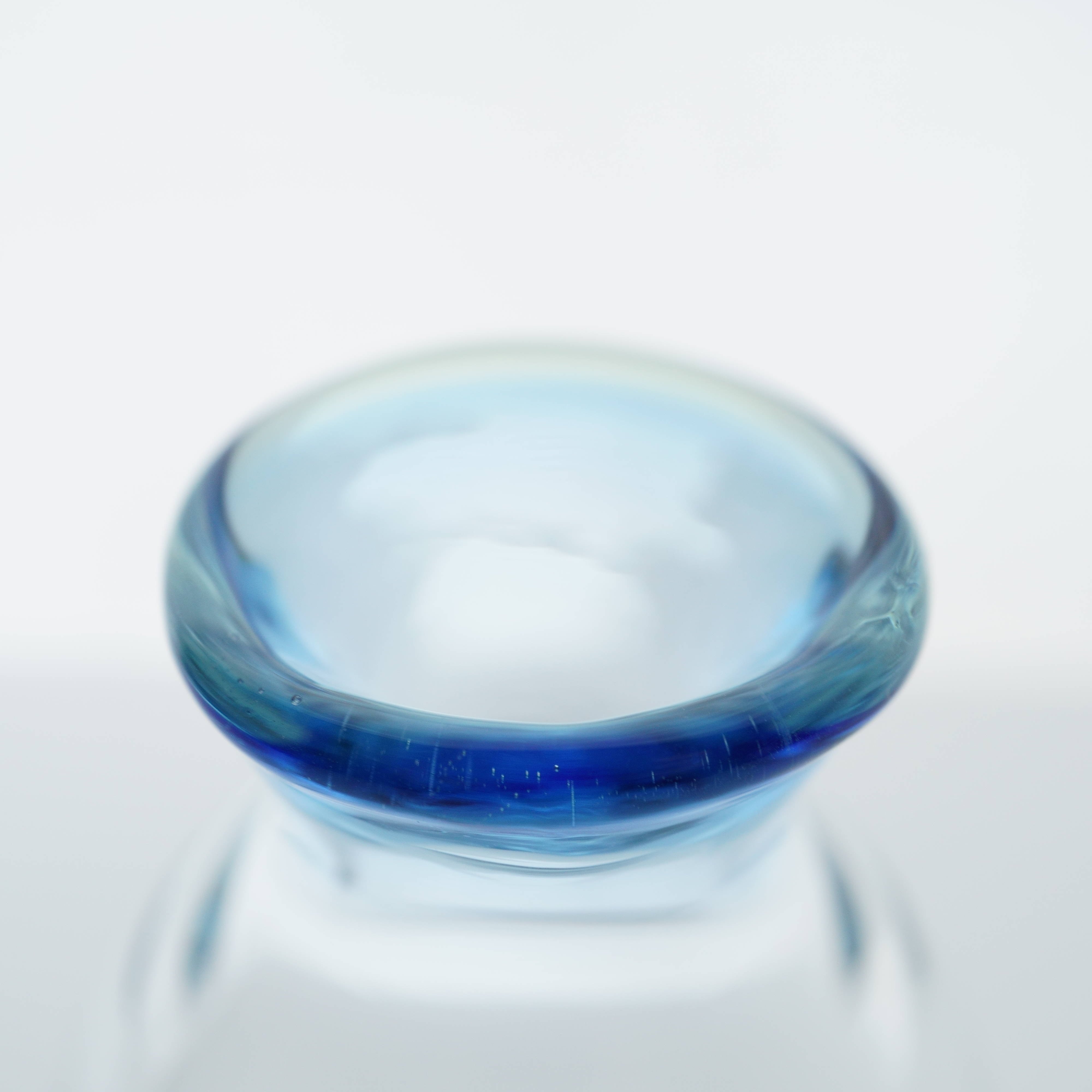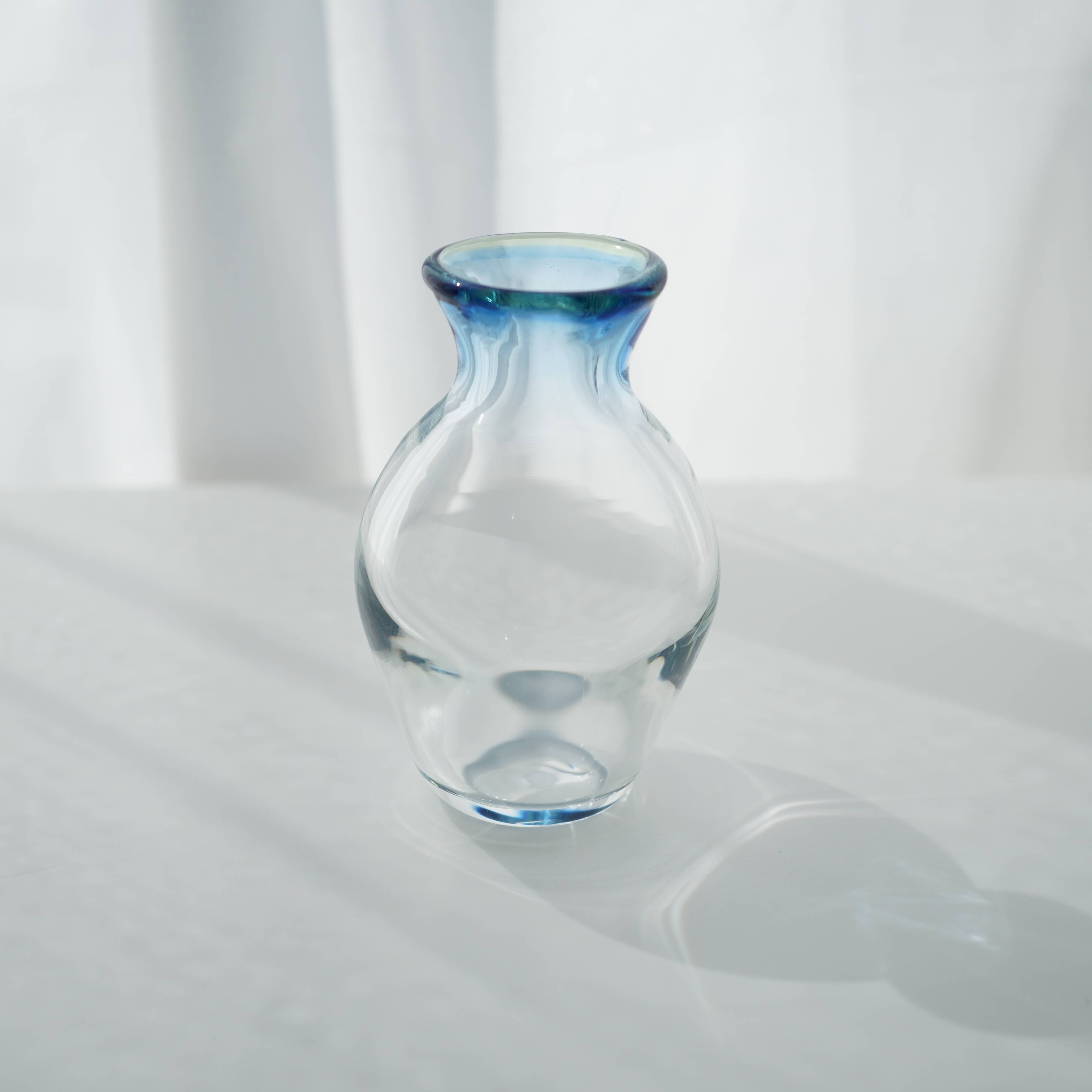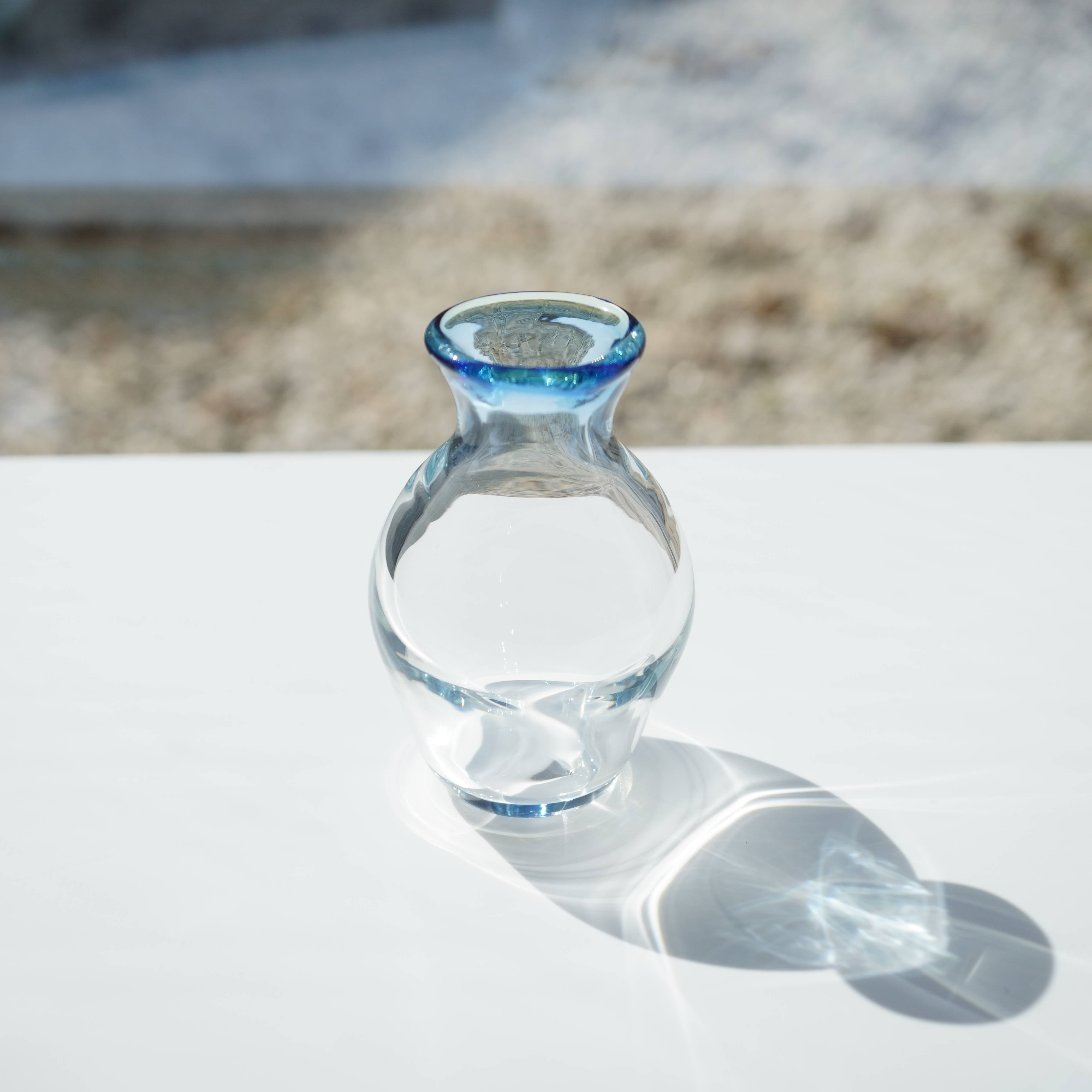 底も安定しておりずっしりとした重さも感じます。口に2色のガラス使ってグラデーションしました。